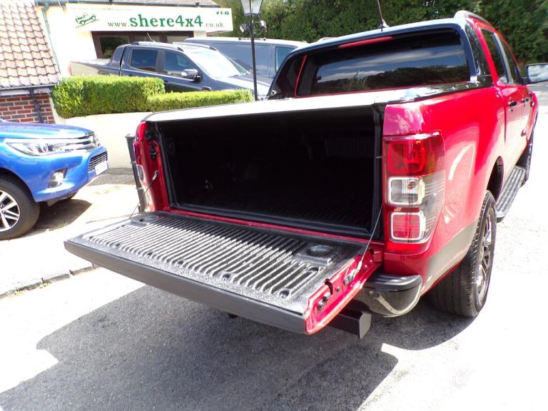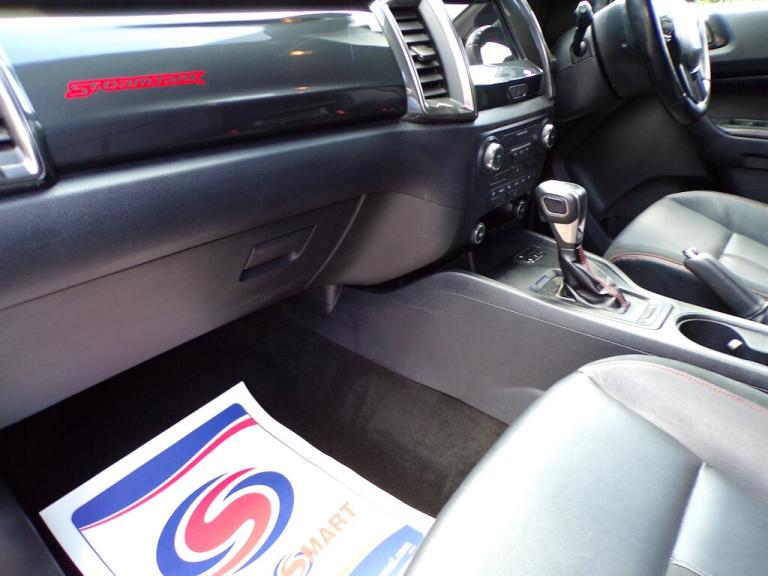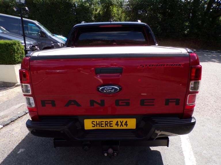 A stunning example of the top of the range ""Stormtrak Edition"" that features a Electric Roller shutter, full Stormtrak leather and Alcantara interior with Red stitching, Stormtrak front grill and bonnet decals making this Ranger look stunning. Finished in Lucid Red metallic...colour touch screen satellite navigation with integral park camera and full Bluetooth integration, lane departure warning and assist, cruise control, heated front seats, electric drivers seat, dual zone climate control air conditioning, heated windscreen, auto on headlights and wipers, keyless entry and start, 18"" Black alloy wheels, tow pack, and presented in exceptional condition throughout having only covered 30500 miles from new and serviced with Ford ....Available now at our Northchapel Branch. This, and all of our Used Double Cab Pickup Trucks are based at our Northchapel Branch in West Sussex. So if you are looking for a quality used pick up for sale, don't hesitate to call us on 01428 707004. Please call us before you visit to confirm vehicle availability and location.. 18in Alloy Wheels - 8in Boulder Grey-Machined,2 Key Fobs,ABS - ESP and Roll-Over Mitigation,Airbags - Curtain,Airbags - Driver and Front Passenger,Airbags - Drivers Knee Bolster,Airbags - Front Side,Body Coloured Plastic Front Bumpers,Boulder Grey Exterior Door Handle,Boulder Grey Exterior Mirror Finish,Boulder Grey Radiator Grille,Boulder Grey Step Design Rear Bumper,Cargo Box Power Point Plug,Chrome Lift -Decklid Handle,Collision Mitigation System,Cruise Control with ASLD -AEB and ISA,Day-Night Inside Mirror,Daytime Running Lamps,Double Locking Power Door Lock with Flip Key,Driver Seat Back Mounted Map Pocket,Dual Control System - EATC,Dual Power Heated Fold Back Mirrors with Puddle Lamps and Signal,Dyno Grey Sports Hoop with Side Rails,EPAS - Electric Power Assisted Steering,Ebony Headliner,Electrically-Operated Windows with One-Shot Drivers Window,Electrochromic Inside Mirror,Fixed Rear View Camera,Ford SYNC 3 Single CD-DAB Radio - TMC and Active Noise Cancelling,FordPass Connect,Front Parking Aid,Front Seats - Driver and Passenger Heated Seats,Front Splash Guard - Mud Flaps,Gearshift Knob - Leather,Headlights - LED,Heated Windshield and Rear Window,High Mounted Stop Lamp with Cargo Light,ISOFIX Child Safety Seat Attachments,Inside Chrome Door Handles,Intelligent Speed Assistance,Interior Ambient LED Lighting,LED Front Fog Lamps,Lane Keeping Aid,Leather Seat Trim,Load Box Bedliner,Load Box Bedliner - Power Point and Tie Down Hooks,Load Rest,Loadbox Inside Tie Down Hooks,Locking Rear Axle,Locking Wheel Nuts,Moulded in Colour Tailgate Handle,Mud Flaps - Rear,Painted Front Fender Grill,Passive Anti-Theft System,Passive Keyless Entry and Start,Power Converter,Power Tailgate Lock,Premium Front and Rear Floor Mats,Privacy Glass,Rain Sensitive Windshield Wipers,Rear Bumper Chromed Steel Step,Rear Parking Sensors,Rear Power Point Plug,Roof Rails,Roof Storage for Driver Sunglasses,Seats - Drivers 8-Way Adjustment,Side Step with Brushed Inserts,Spare Wheel Lock,Sport Leather Stitched Steering Wheel,Sports Bar with High Mounted Brake Light,Sports Hoop,TSR - Traffic Sign Recognition,Tailgate with Easy-Lift - Lower Mechanism,Thatcham Category 1 Security System,Tie Down Rail with Rope Hooks,Tyre Pressure Sensors,Under Body Protection,Under Hood Engine Cover,Wildtrak Door Trim Panel Insert,Trailer Tow Pack,Journey Grain Partial Leather - Ebony