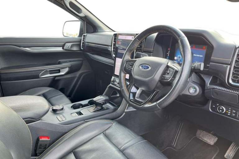 SYNC 4 includes Android Auto - Apple Car Play with advance speech recognition and over the air update capability, Touchscreen Head Unit , DAB Radio, Satellite Navigation System, Front + Rear Parking Sensors , Reversing Camera , Heated Front Seats, Heated Steering Wheel, Dual Zone Climate Control, Cruise Control , Air Conditioning, Bluetooth, Voice Control , Automatic Headlights, Push Button Start, USB Port, Electric Parking Brake, Heated Front Windscreen, Daytime Running Lights, Immobiliser, Roof rails, Engine start/stop system, Ladder rack, Privacy glass, Trip computer, Reach and rake adjustable steering column, Child proof rear door locks, Pollen filter, High mounted stop lamp, Body coloured door handles, Tie down rails and rope hooks, Power door dead locks, Electrochromic interior mirror, Under hood engine cover, Tyre pressure sensors, Thatcham alarm system, Power front windows with one touch up/down, Front and rear disc brakes, Rain sensitive windshield wipers, Locking rear axle, Electric power assisted steering, Washer tank level warn lamp, LED Front fog lamp, Roof storage for driver sunglasses, LED ambient interior lighting, ISOFIX child safety seat attachment, Passive keyless entry and start system, Power tailgate lock, Ebony headliner, Rear splash guard, Thatcham security system, Rear fog lamps, Premium front and rear floor mats, Pre collision assist, Acoustic laminated windscreen, Electric windshield defroster, Locking wheel lug nut, Electric rear window defroster, Front