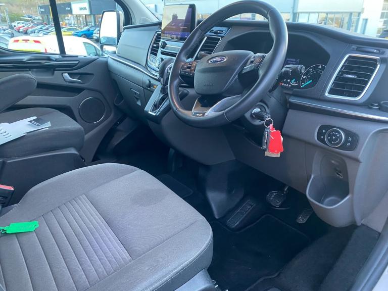 ..Embedded modem, PAS, Trip computer, Tyre pressure monitor, Voice control system, 10 speakers, Audio controls mounted on steering wheel, Aux input socket, 'Guide me home' headlights, 2 Speed wipers with electric wash, 3rd Row left and right fixed windows, Body colour door and tailgate handles, Body colour exterior mirror finish, Body colour front and rear bumpers, Door lenght running boards, Electric rear window defroster, Fixed rear window, Front and rear wheel arch extensions, Front splash guard, Heated rear window, Low roof line, Power front windows with one shot up/down, Rain sensing wipers, Rear cargo liftgate door, Rear splash guard, Trans linked rear washer/wiper, Twin sliding side load doors, Wide bodyside body coloured moulding, Carpet floor covering in passenger compartment, Coat hook, Driver and passenger storage bins on facia with lids, Facia mounted tray with pen holder and cupholders, Front door map pockets, Full moulded headlining, Header mounted courtesy lights - 2 map lights, Header mounted package tray, Height adjustable head restraints, Height and reach adjustable steering wheel, Illuminated footwell, Isofix child seat attachments - centre and offside 2nd row seats, Leather gearknob, Load compartment interior light, Lockable glove box lid, Manual air conditioning, Map reading lights, Passenger sunvisor, Passengers side open storage, Rear armrest, Rear seat climate control, Rear side window blinds, Reclining rear seats, Tool kit, Twin bottle holders, Colour keyed exterior pack - Tourneo custom, Interior trim accent pack E - Tourneo custom, 3 point seatbelts for all seats, Driver and passenger seatbelt reminder, Driver's airbag, Front passenger airbag with deactivation, Front seatbelt pretensioners, Anti-theft perimeter alarm system, Category 2 immobiliser, Configurable Unlocking, Door entry remote control unit 2 Fobs key, Locking wheel lug nut, Remote central locking, ABS, Alternator - 150A, Battery saver, Brakes - ESP/HLA/FBS, Diesel particulate filter, Power socket in drivers stowage bin, Rear auxilliary power point socket, Roll stability control, Side wind mitigation, 17'' alloy wheels, 17'' Mini spare wheel
