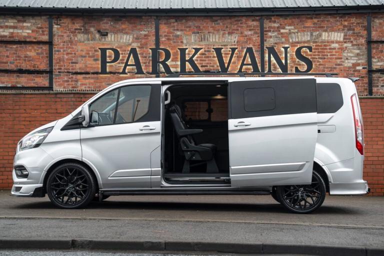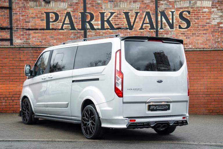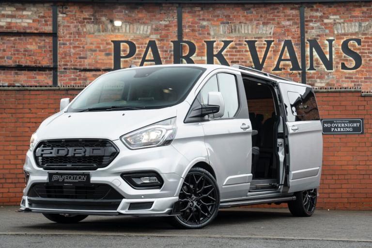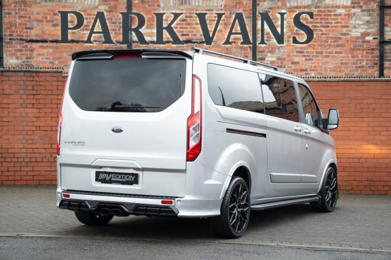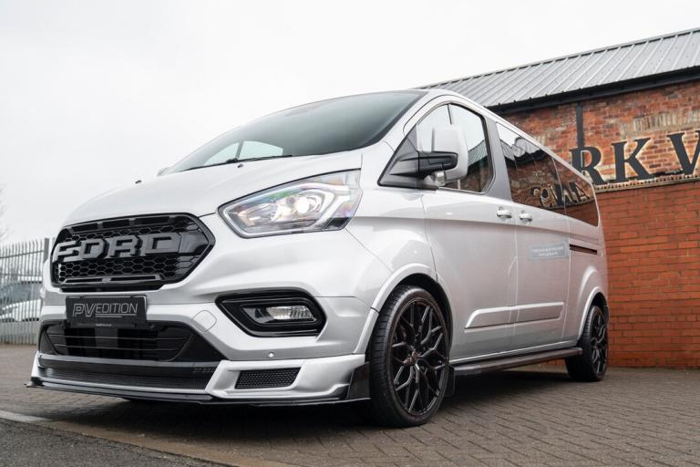 2023 FORD TRANSIT CUSTOM TOURNEO 2.0 TDCI FINISHED IN MOONDUST SILVER, LWB, 20000 MILES, 9 SEATER, TAILGATE, JUST HAD A FULL SERVICE, ONE OWNER, 2 KEYS, AUTOMATIC, 170BHP, TOP OF THE RANGE TITANIUM SPEC INCLUDING. FULL LEATHER INTERIOR, AIR CON, COLOUR CODED, HEATED SEATS, BLUETOOTH, DAB, CRUISE CONTROL, NAV, AUTO LIGHTS WITH DRLS, AUTO WIPERS, PARKING SENSORS, FULL CUSTOM STYLING INCLUDING FULL BODY KIT WITH FRONT SPLITTER, REAR SPLITTER, SIDE STEPS AND ROOF SPOILER, ROOF BARS, NEW 20 INCH ALLOY WHEELS, GLOSS BLACK GRILLE PACKAGE INCLUDING RAPTOR MAIN GRILLE, CUSTOM FLAT BOTTOM STEERING WHEEL, IMMACULATE THROUGHOUT, A ONE OFF BESPOKE VAN DESIGNED BY OURSELVES, ONLY 39,995.00 ON THE ROAD NO VAT