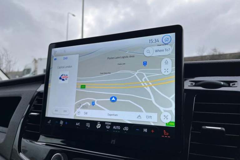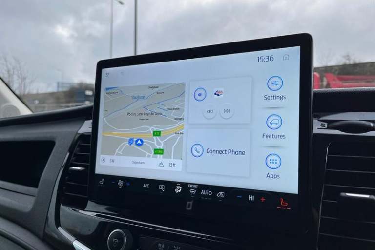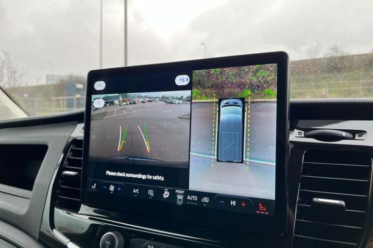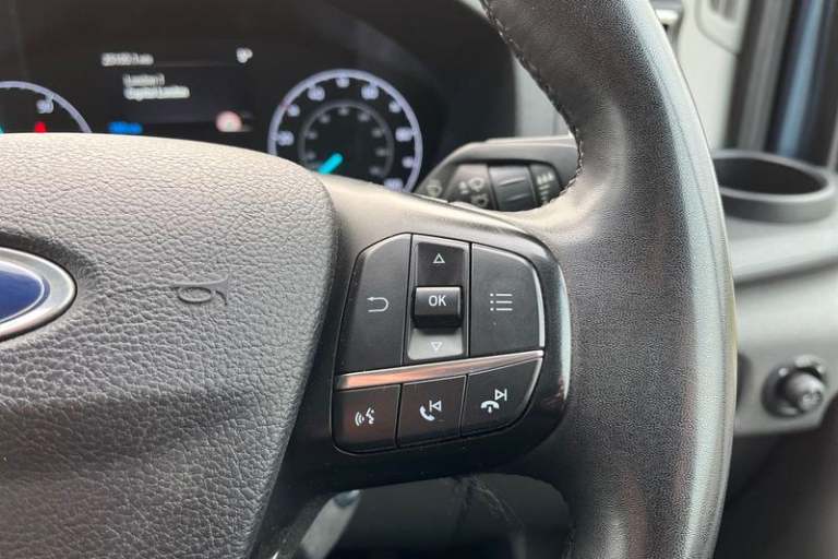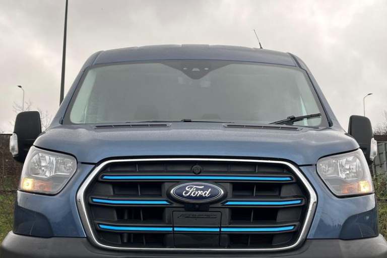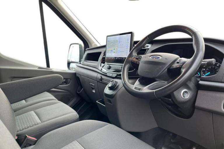 360 DEGREE CAMERA Keep an eye on safety via the 360 degree camera displaying the world around you , QUICKCLEAR HEATED WINDSCREEN uses ultra thin filaments that superheat to de-ice and de-mist your windscreen as well as help de-freeze the wipers and works in seconds, CRUISE CONTROL provides extra comfort on longer journeys allowing you take your foot off the acceleration whilst just focusing on steering the vehicle, BLUETOOTH HANDS FREE WITH VOICE CONTROL allows you to operate both your mobile phone and Ford audio system - controlling several functions using a set list of simple voice commands, SELECTABLE DRIVE MODES - Tailor your E-Transit driving settings with three Selectable Drive Modes to suit the conditions Normal for everyday driving Slippery improves handling in wet or icy conditions and Eco helps you to get the most range from the battery, FRONT AND REAR PARKING SENSORS are designed to help you park more confidently helping you judge the distance between your vehicle and obstacles both in front and behind you, PAS, Rear bumper with integral step, Single rear wheels, Rear mudflaps, Driver's armrest, Warning lights, Reach and rake adjustable steering column, High mounted stop lamp, Audio controls mounted on steering wheel, 2 x 12V power outlets, Heavy duty front axle, Wide bodyside mouldings, Dual passenger seat tray and table, Easy clean load floor, Side wind mitigation, Lockable glove box, Navigation system, Electronic parking brake, Power windows, ABS + ESP + Hill start