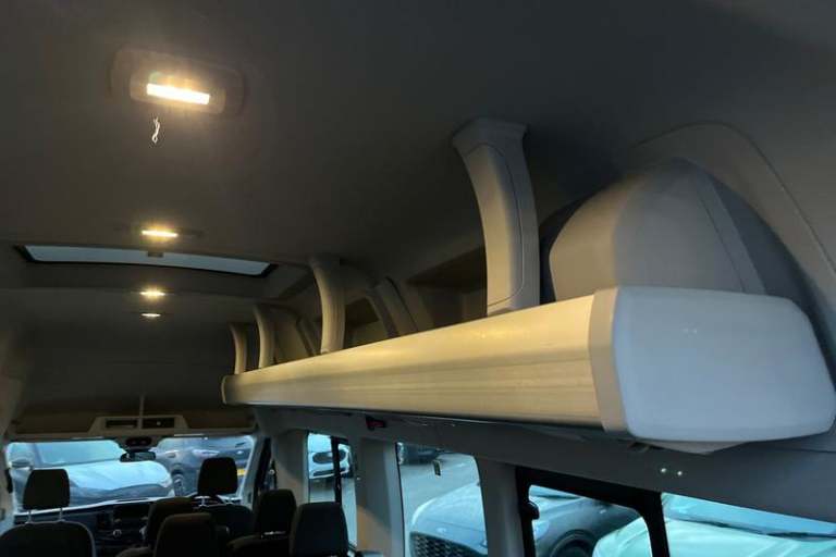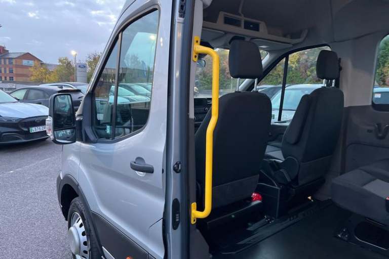 HILL START ASSIST temporarily stops you rolling backwards or forwards when making a hill start - maintaining pressure to the braking system for an extra 25 seconds giving you more time and control as you move your foot from the brake to the accelerator, BLUETOOTH HANDS FREE WITH VOICE CONTROL allows you to operate both your mobile phone and Ford audio system - controlling several functions using a set list of simple voice commands, Remote central locking, Dual power heated signal mirrors, Selectable drive mode, Auto start/stop system, Heavy duty battery, Kerbside side load doors, Driver one touch up/down power windows, 270 degree rear cargo door with magnetic rentention, PAS, Overhead LED reading lights, Day/Night inside mirror, ABS + ESP + Hill start assist, Trip computer, Steel spare wheel, Driver's armrest, High mounted stop lamp, 16 steel wheels, 2 x 12V power outlets, Heavy duty front axle, Electronic dynamic cornering control, Lane departure warning system, Auto wipers, Lane keeping aid, Vehicle maintenance monitor, Dual rear wheels, Glovebox with A4 file storage, 62 mph engine governor, Rake and reach steering adjustment, Overhead airconditioning vents, Electric windshield defroster, Wide bodyside grey mouldings, Electric rear window defroster, Complete tinted glass, Quickclear windscreen, Load compartment light, Complete molded headliner, Driver large head/short arm mirror, Premium feel steering wheel, Emergency hammer, EXTRA LONG, Minibus, HIGH ROOF, ULEZ COMPLIANT,