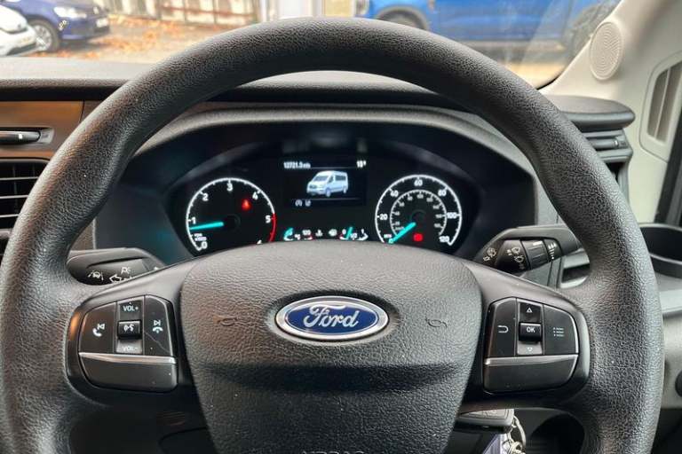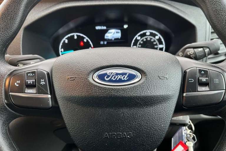 BLUETOOTH HANDS FREE WITH VOICE CONTROL allows you to operate both your mobile phone and Ford audio system - controlling several functions using a set list of simple voice commands, HILL START ASSIST temporarily stops you rolling backwards or forwards when making a hill start - maintaining pressure to the braking system for an extra 25 seconds giving you more time and control as you move your foot from the brake to the accelerator, QUICKCLEAR HEATED WINDSCREEN uses ultra thin filaments that superheat to de-ice and de-mist your windscreen as well as help de-freeze the wipers and works in seconds, Dual power heated signal mirrors, Remote central locking, 270 degree rear cargo door with magnetic rentention, Heavy duty battery, PAS, Trip computer, Glovebox with A4 file storage, Steel spare wheel, Driver's armrest, High mounted stop lamp, 16 steel wheels, 2 x 12V power outlets, Quickclear windscreen, Heavy duty front axle, Auto start/stop system, Electronic dynamic cornering control, Lane departure warning system, Auto wipers, Lane keeping aid, Vehicle maintenance monitor, Selectable drive mode, Dual rear wheels, ABS + ESP + Hill start assist, 62 mph engine governor, Overhead LED reading lights, Overhead airconditioning vents, Electric windshield defroster, Kerbside side load doors, Driver one touch up/down power windows, Wide bodyside grey mouldings, Day/Night inside mirror, Electric rear window defroster, Complete tinted glass, Load compartment light, Complete molded headliner,