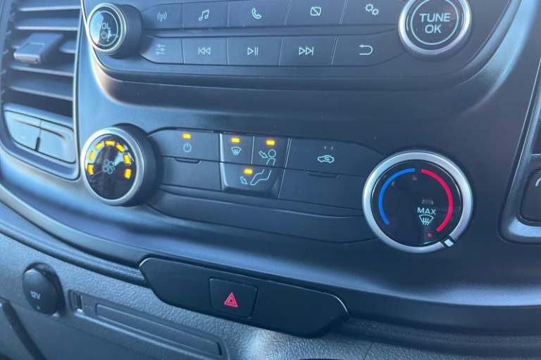 Anti-lock brake system, Remote central locking, Driver's airbag, PAS, Recirculation heater, Spare wheel, Headlamp levelling, Driver and passenger sun visors, 2nd row three seat wide bench, Rear mudflaps, Electronic Stability Programme, Trip computer, Glazed bulkhead, Height adjustable head restraints, 3 point seatbelts for all seats, Height adjustable drivers seatbelt mount, Reach and rake adjustable steering column, High mounted stop lamp, 15 steel wheels, 2 adjustable sunvisors, Intermittent front wash/wipe, Tool kit, Audio controls mounted on steering wheel, Passenger underseat storage box, Electronic Stability Programme + Emergency Brake Assit, Part body colour front bumper, Auto relocking, Auto locking on drive-away, Floorwell lights, Passenger seatbelt height adj, 2 12v sockets, Hub cap covers, Illuminated footwell, Diesel particulate filter, Isofix child seat attachments - centre and offside 2nd row seats, Easy fuel capless refuelling system, Low roof line, 80 litre fuel tank, Ford Eco mode, Auto start/stop system, Mechanical parking brake, Roll stability control, Side wind mitigation, Vehicle maintenance monitor, Selectable drive mode, Passenger side sliding load door with track cover, Extra heavy duty alternator, Automatic headlamps with follow me home, Seatbelt remainder for driver and passenger, Kerbside side load doors, Intermittent variable windshield wiper, Embedded modem, Self coloured rear bumper, Emergency brake light flashing, B pillar assist handle, Front