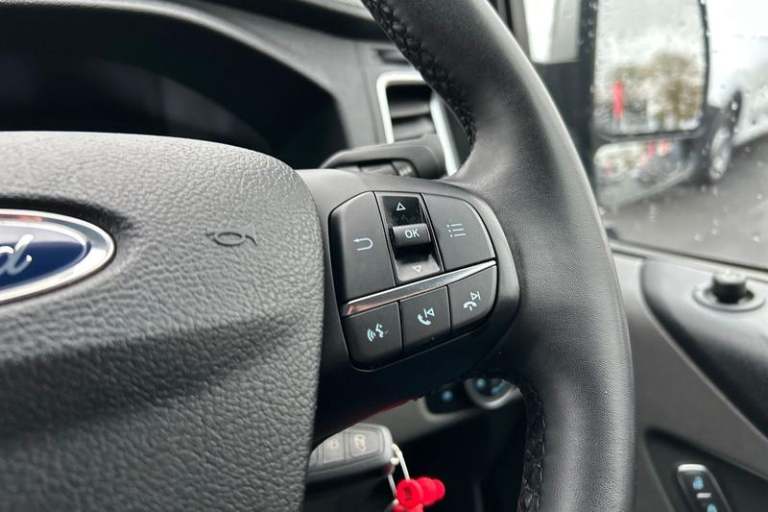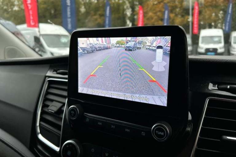 REAR VIEW CAMERA shows whats behind you on a screen in front of you on the dashboard - the system activates when you select reverse gear and using virtual guidelines can help you park, HEATED FRONT SEATS Provide comfort in any weather, CRUISE CONTROL provides extra comfort on longer journeys allowing you take your foot off the acceleration whilst just focusing on steering the vehicle, QUICKCLEAR HEATED WINDSCREEN uses ultra thin filaments that superheat to de-ice and de-mist your windscreen as well as help de-freeze the wipers and works in seconds, FRONT AND REAR PARKING SENSORS are designed to help you park more confidently helping you judge the distance between your vehicle and obstacles both in front and behind you, HILL START ASSIST temporarily stops you rolling backwards or forwards when making a hill start - maintaining pressure to the braking system for an extra 25 seconds giving you more time and control as you move your foot from the brake to the accelerator, BLUETOOTH HANDS FREE WITH VOICE CONTROL allows you to operate both your mobile phone and Ford audio system - controlling several functions using a set list of simple voice commands, Anti-lock brake system, Remote central locking, Driver's airbag, PAS, Recirculation heater, Spare wheel, Headlamp levelling, Load compartment interior light, Rear mudflaps, Electronic Stability Programme, Trip computer, Cloth upholstery, 3 point seatbelts for all seats, Height adjustable drivers seatbelt mount, Map reading lights, Reach