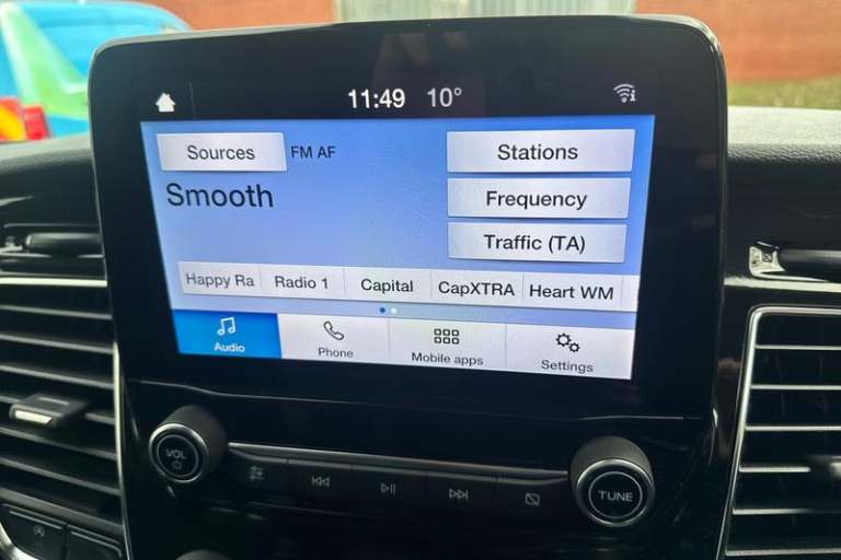 CRUISE CONTROL provides extra comfort on longer journeys allowing you take your foot off the acceleration whilst just focusing on steering the vehicle, DIGITAL REAR VIEW MIRROR is an intelligent rear vision system that uses a rearward facing digital camera to capture video and stream it to the mirror-integrated LCD display, QUICKCLEAR HEATED WINDSCREEN uses ultra thin filaments that superheat to de-ice and de-mist your windscreen as well as help de-freeze the wipers and works in seconds, HEATED FRONT SEATS Provide comfort in any weather, FRONT AND REAR PARKING SENSORS are designed to help you park more confidently helping you judge the distance between your vehicle and obstacles both in front and behind you, BLUETOOTH HANDS FREE WITH VOICE CONTROL allows you to operate both your mobile phone and Ford audio system - controlling several functions using a set list of simple voice commands, HILL START ASSIST temporarily stops you rolling backwards or forwards when making a hill start - maintaining pressure to the braking system for an extra 25 seconds giving you more time and control as you move your foot from the brake to the accelerator, Anti-lock brake system, Remote central locking, Driver's airbag, PAS, Recirculation heater, Spare wheel, Headlamp levelling, Load compartment interior light, Rear mudflaps, Electronic Stability Programme, Trip computer, Cloth upholstery, 3 point seatbelts for all seats, Height adjustable drivers seatbelt mount, Map reading lights, Reach and rake