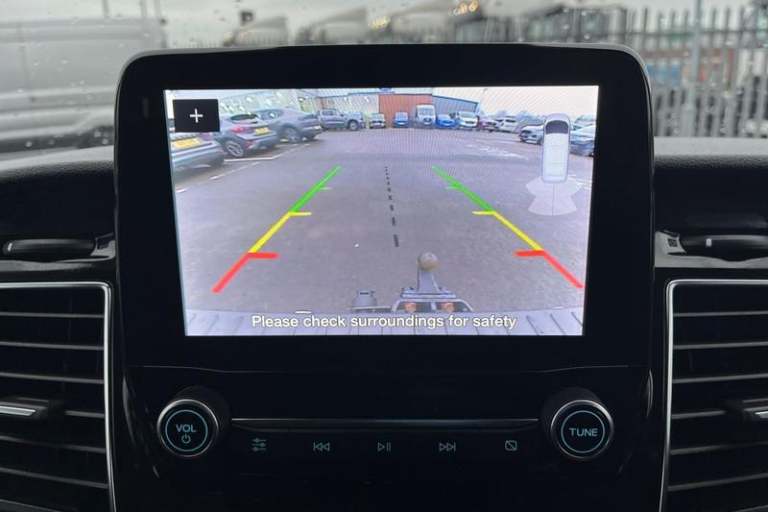 REAR VIEW CAMERA shows whats behind you on a screen in front of you on the dashboard - the system activates when you select reverse gear and using virtual guidelines can help you park, QUICKCLEAR HEATED WINDSCREEN uses ultra thin filaments that superheat to de-ice and de-mist your windscreen as well as help de-freeze the wipers and works in seconds, CRUISE CONTROL provides extra comfort on longer journeys allowing you take your foot off the acceleration whilst just focusing on steering the vehicle, HEATED FRONT SEATS Provide comfort in any weather, BLUETOOTH HANDS FREE WITH VOICE CONTROL allows you to operate both your mobile phone and Ford audio system - controlling several functions using a set list of simple voice commands, FRONT AND REAR PARKING SENSORS are designed to help you park more confidently helping you judge the distance between your vehicle and obstacles both in front and behind you, Automatic headlamps with follow me home, Electric front windows with one touch facility for driver and front passenger, Automatic lights and wipers, Front manual air conditioning, Thatcham category 1 alarm with 2nd remote key, Remote central locking, Driver's airbag, PAS, Recirculation heater, Spare wheel, Headlamp levelling, Load compartment interior light, 16 6.5 alloy wheels, Rear mudflaps, Electronic Stability Programme, Trip computer, Cloth upholstery, 3 point seatbelts for all seats, Height adjustable drivers seatbelt mount, Map reading lights, Reach and rake adjustable steering