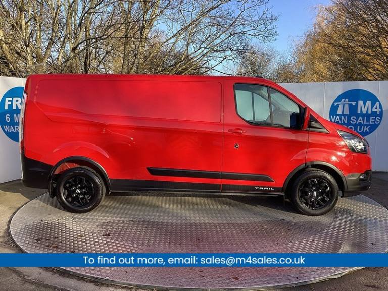 No VAT,Euro 6 ULEZ Compliant,Air Conditioning,Alloy Wheels,Front & Rear Parking Sensors,Cruise Control,Heated Front Seats,Heated Front Screen,Bluetooth,Apple Car Play,ABS,Alarm,Bulkhead (Metal),Remote Central Locking,Driver Airbag,Electric Mirrors,Electric Windows,immobiliser,Power Assisted Steering,plylined,Radio,Side Loading Door,Solid Tailgate,Front Fog Lights,Front Centre Armrest,6 Speed Gearbox,Passenger Airbag,USB connection,Stop Start,Rear Camera,2 Previous Owners.Call us today on 01793 988689 to find out more or to reserve this vehicle.Ford Transit 300 LWB Custom Trail 170ps – Red – 26k – 1995ccThis No VAT, Euro 6 ULEZ-compliant Ford Transit Custom Trail combines rugged capability with premium features. With low mileage, a long wheelbase, and modern technology, it’s perfect for business or personal use.Specification:•Apple Car Play•Front & Rear Parking Sensors•Rear Camera•Heated Front Seats•Heated Front Screen•Air Conditioning•Cruise Control•Alloy Wheels•Side Loading Door•Solid Tailgate•Front Centre Armrest•USB Connection•Bluetooth•Stop/Start•6-Speed Gearbox•Electric Windows•Electric Mirrors•Remote Central Locking•Driver Airbag•Passenger Airbag•Power-Assisted Steering•Alarm•Immobiliser•ABS•Bulkhead (Metal)•Ply Lined•Radio•Front Fog Lights•2 Previous OwnersFully serviced and ready for work, it includes a free 6-month warranty with the option to upgrade to 12, 24, or 36 months, covering major components such as the DPF and timing belt, providing additional peace of mind.We’re based on the M4 corridor in Swindon, Wiltshire at the M4 Van Centre, specialists in quality new and used vans and minibuses. We offer low-rate finance, part exchange, and nationwide delivery. All our vehicles are fully serviced on-site and include a standard 6-month warranty with the option to extend.