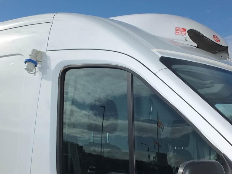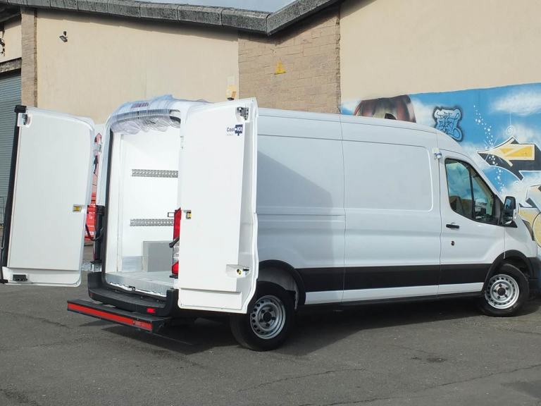 Hope 'safe-T-bar' Anti-Slip Full-Width Rear Step, Insulated Bulkhead, Unglazed Twin Rear Doors, 3 Seats - Double Passenger Seat with Split Lift-Up Seat Cushion & Underseat Stowage, 3.5 tonne / 3500 kg GVW L3 Long Wheelbase Insulated Van with Chiller - H2 Medium Roof Height, 'Leader' Model, Quad Beam Halogen Projector Headlamps, Ford 'Easy Fuel' Capless Refuelling System, Hill Start Assist, Driver Airbag, ABS with Curve Control, EBA (Emergency Brake Assist) & EBD (Electronic Brakeforce Distribution), ESC (Electronic Stability Control), LAC (Load Adaptive Control), RSC (Roll Stability Control), Traction Control, Electric Power-Assisted Steering (EPAS), Remote Central Locking with Deadlocking,