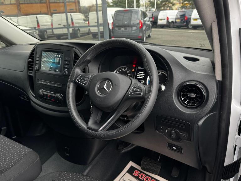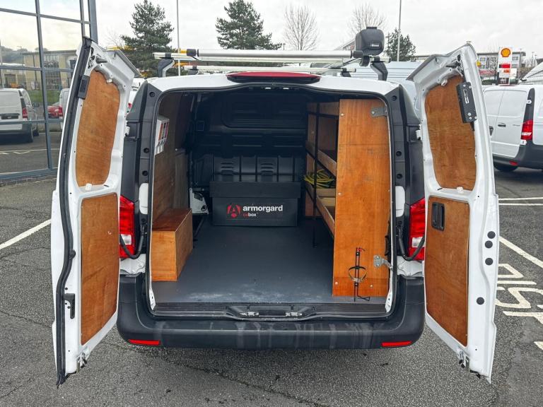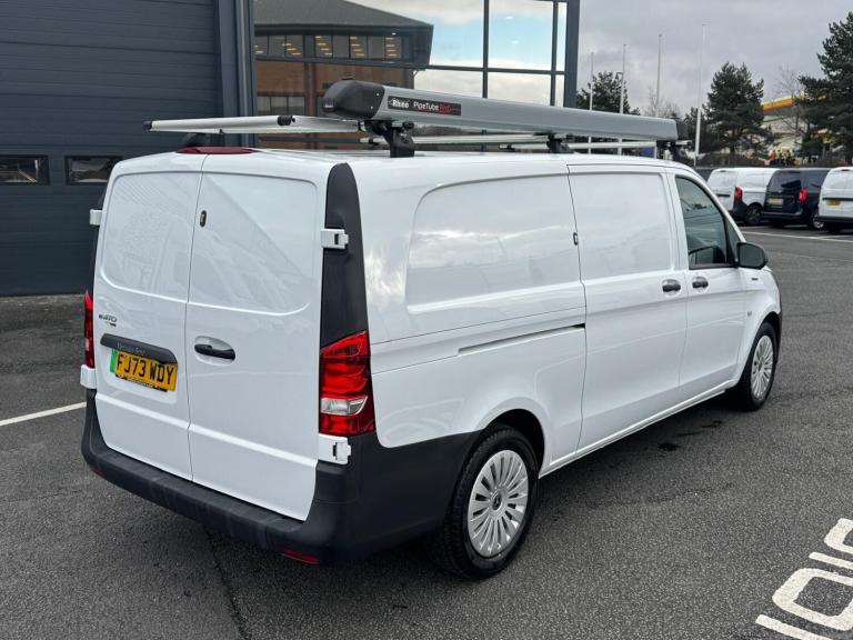 Ciceley Commercials are pleased to bring to market this superb example of the all electric eVito Panel Van. This XLWB variant allows for 3 metre lengths on the floor of the load area boasting an overall load volume of 6.6m squared for maximum practicality. Additional exterior features include: Roof rack with ladder roller paired with a Rhino Pipe Tube. Additional interior features include: Armorgard medium size lockable storage, Wooden shelving unit on the drivers side with Fire Extinguisher bracket (No Extinguisher included) and Hand wash dispenser unit to the passenger side load area.Performance and charging:- 162 miles range- 66kWh battery output- 80kW rapid DC charging (10-80% in 35 mins) helping to limit down time and get you back on the road quickly. - 11kW AC charging (0-100% in 6.5 hours) for standard AC public charging/three phase- 7.2kW (0-100%) in 8 hours) for standard home charging - 3 driving modes- 4 regeneration modes- Heated Drivers SeatThe eVito provide a viable alternative to hard to source diesel vans. Offering significantly reduced operating costs through low maintenance prices, ZERO Low Emission Zone charges, Carbon offset benefits through your company, convenient & fast low cost charging especially if charging at home or work via a dedicated charger. Remainder of 8 year Battery Warranty from date of registration - 30/10/2023Up to 30 years Mobilo Van Breakdown Assistance. Ciceley Commercials are your Mercedes-Benz Main Dealer for all your Mercedes-Benz van requirements. We offer as standard...**Trained, Friendly & Professional Sales Teams****Part Exchange Service****Nationwide Delivery Possible****Competitive & Tax Efficient Finance Packages****Showroom Facilities For Viewing & Test Drives**Contact us today to learn more about this vehicle and how Ciceley can assist you. 01254 870990.