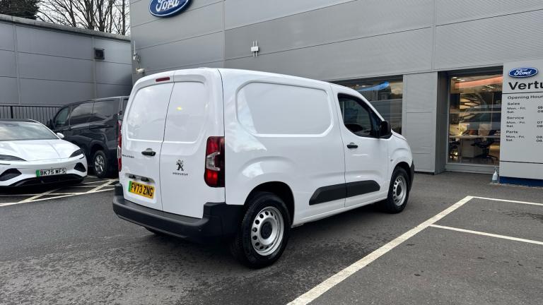 The Peugeot E-Partner Professional Premium + is powered by a 50 kWh battery and a 100 kW electric motor, delivering strong, silent performance with a practical real-world driving range of up to 170 miles (WLTP)—perfect for urban driving, deliveries and daily business use.Home Charging: Using a standard 7 kW wallbox, a full charge from empty takes approximately 7 hours 30 minutes—ideal for overnight charging.Off-Peak Efficiency: On an overnight EV tariff (often around 7p per kWh), a full charge costs around £3.50, meaning a full day’s driving can be achieved for just pocket change.Rapid Charging: On the go, the E-Partner supports 100 kW DC rapid charging, taking you from 0–80 % in about 30 minutes at a compatible public charger.ADDITIONAL SPECIFICATION: Enjoy modern convenience with Apple CarPlay, Bluetooth connectivity, a DAB radio, and USB charging ports. Safety and practicality are enhanced with rear parking sensors.With very low mileage and a 2023 registration, this all-electric van is ready to work efficiently and affordably.At Vertu Ford Orpington, we are located just 5 minutes from Junction 4 of the M25 and are well served by local public transport links. If you are travelling to see us from further afield, we would be happy to recommend local options for dining and overnight accommodation, and London Gatwick airport is just 30 minutes away by taxi. Our experienced sales team will suggest a test drive route which will allow you to fully experience your van of choice, with a range of free-flowing roads right on our doorstep. Every vehicle is fully prepared both mechanically and cosmetically up to the highest standard by Ford trained technicians and will have a minimum of 6 months MOT remaining. To give you even further reassurance we also supply you with 3 months complimentary warranty, with a further choice of extended warranty options available for long term peace of mind. We offer nationwide delivery on all of our vehicles, free for the first 30 miles and just £2 per mile beyond that..Air Conditioning, Climate Control, Cruise Control, DAB Radio, Bluetooth, Parking Sensors, Low Mileage, Full Service History, USB, Apple-Android Play& Auto Lights