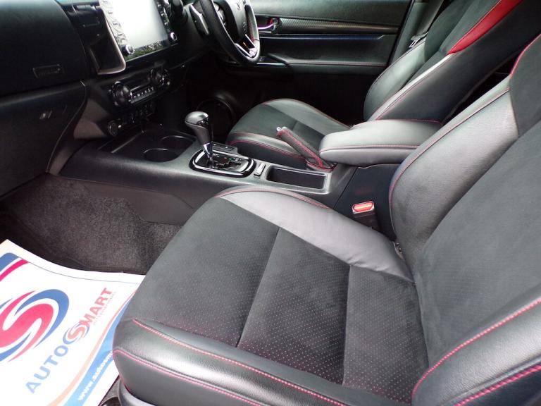 Full Toyota service history. Finished in Grey metallic with contrasting Black-Grey leather Alcantara GR Sport interior....A fine example of the top of the range ""GR Sport"", this Hilux features-GR Sport upgrades including suspension, styling and much more, Roller shutter with Black Style bar, heated seats front, Sat/nav with integral park camera, JBL Speaker pack, full bluetooth integration, cruise control, climate control air conditioning, 17"" alloy wheels, electric windows and mirrors, remote central locking, Tow pack, and is in lovely condition throughout. Make it, The Smart Choice. Car Guru's Top Rated Dealer 2018-2019-2020. AutoTrader 5.0 star reviews. Google 5 star reviews. MAKING IT THE SMART CHOICE. This, and all of our Used Double Cab Pickup Trucks are based at our Northchapel Branch in West Sussex. So if you are looking for a quality used pick up for sale, don't hesitate to call us on 01428 707004. Please call us before you visit to confirm vehicle availability and location.. 17in Alloy Wheels - Bi-Tone Black Machined Face - GR Sport,60-40 Split Tip Up Rear Bench,Active Traction Control - ATC,All-Terrain Tyres,Ambient Door Lighting,Anti Lock Braking System - ABS with Electronic Brake-Force Distribution - EBD,Auto Headlights,Automatic Headlight Levelling,BA - Brake Assist,Black G-Mesh Grille,Bluetooth Connectivity,Bumpers - Body Coloured,Cooler in Upper Glovebox,DAC - Downhill Assist Control,Dark Grey Rear Bumper,Digital Audio Broadcast - DAB,Dual-Zone Automatic Air Conditioning,Dynamic Guide Lines On Rear - View Camera Display,Electrochromatic Rear-View Mirror,Emergency Brake-Light Signal - EBS - Hazard Type,Floor Mats - Textile,Follow Me Home Headlights,Front 12V Power Outlet x2,Front Mudguards,Front Passenger Airbag Detector,Front Passenger Airbag On-Off Switch,Front Seat Belt Reminder,Front and Rear Monotube Shock Absorbers,Front and Rear Parking Sensors,Front and Rear Power Windows,Full Spare Alloy Wheel,HAC - Hill Start Assist Control,Headlight Cut-Off Reminder,Headlights - LED,Height Adjustable Driver Seat,Immobiliser,Inner Load Hooks on Cargo Deck,Intelligent Adaptive Cruise Control,JBL Premium Sound System with 9 Speakers,LED Daytime Running Lights,LED Front Fog Lights,LED Rear Lights,Lane Departure Alert,Leather Steering Wheel and Gear Shift,Lockable Tailgate,Panoramic View Monitor,Power Steering,Pre-Collision System with Pedestrian Detection,Privacy Glass - Rear,Rear Fog Light,Rear Mudguards,Rear Passenger Footwell Heating,Rear View Camera,Red Coil Springs - Front,Retractable - Power Adjustable and Heated Door Mirrors,Road Sign Assist,Seats - Drivers Power Adjustment,Seats - Heated Front,Seats - Heated Outer Rear,Shade Band on Windshield,Side Steps - Black,Smart Entry and Smart Start System,Smartphone Integration including Apple Car Play and Android Auto,Sports Bar - Black,Supplemental Restraint System - SRS - Airbags - 7 Airbags,TPMS - Tyre Pressure Monitoring System,Toyota Safety Sense 2,Toyota Touch 2 Multimedia,Toyota Touch 2 with Go Navigation,Trailer Sway Control - TSC,USB Connector,Underbody Protection Cover,VSC - Vehicle Stability Control,Windscreen Wiper De-Icer