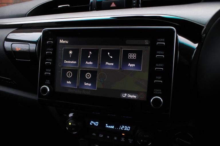 OVER 200 VEHICLES IN GROUP STOCK. Finished in Silver Blade metallic with full black leather interior. Features include Truckman rear canopy, Apple CarPlay and Android Auto, Toyota Touch 2 Go navigation, 18 six twin spoke alloy wheels with dark finish, front and rear park distance control with surround view cameras, heated front and outer rear seats, drivers electric seat adjustment, digital dual zone climate control with automatic air conditioning, Bluetooth connectivity with media streaming, DAB digital radio, automatic LED headlights with LED daytime running lights, rain sensor, intelligent adaptive cruise control, lane departure alert, road sign assist, electric folding exterior mirrors, rear privacy glass, keyless entry, fixed side steps, fixed tow bar, wax oiled, voice control, multifunctional leather steering wheel, automatic transmission plus much more standard specification. This Hilux Invincible X is offered in excellent condition having covered 23800 miles from new by its 1 former keeper. The truck comes complete with a service history consisting of the following 10/04/2024 at 11435 miles and 06/08/2024 at 17881 miles. Plus VAT. GOOGLE YORKSHIRE VEHICLE SOLUTIONS FOR OUR CUSTOMER REVIEWS. PLEASE CALL OR E-MAIL FOR FURTHER DETAILS OR TO ARRANGE A PERSONALISED VIDEO OR VIEWING. THIS DEALER HAS COMMITTED TO AA CARS STANDARDS AND IS APPROVED BY THE CHARTERED TRADING STANDARDS INSTITUTE.