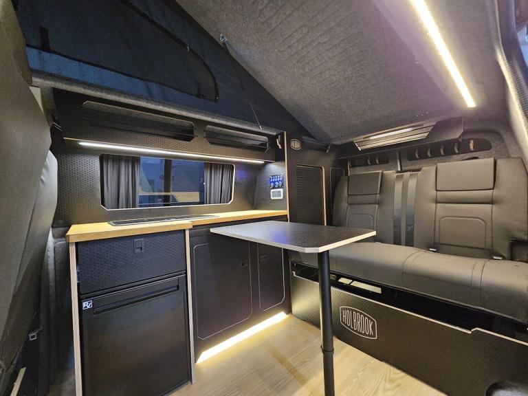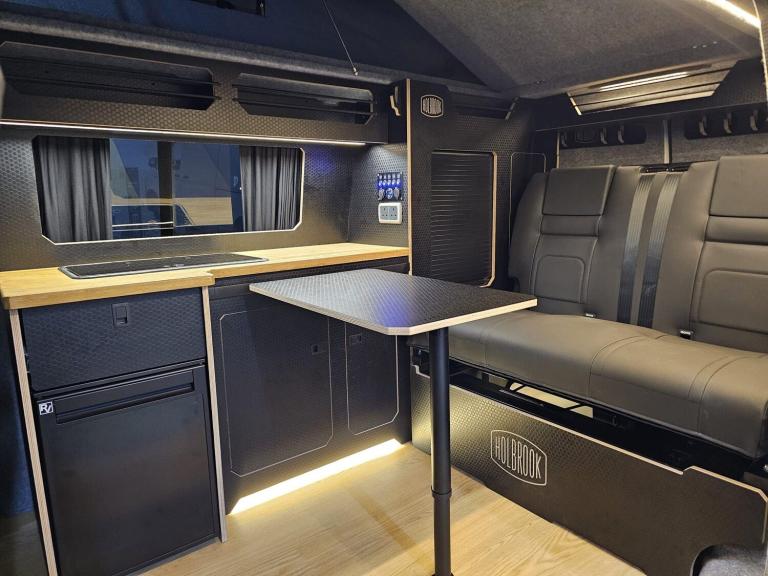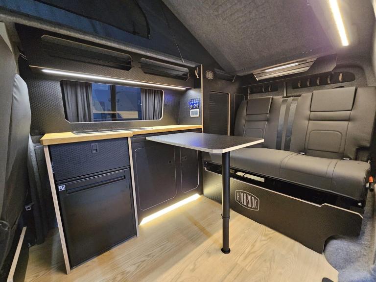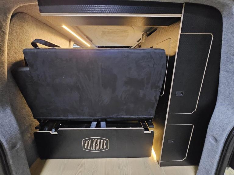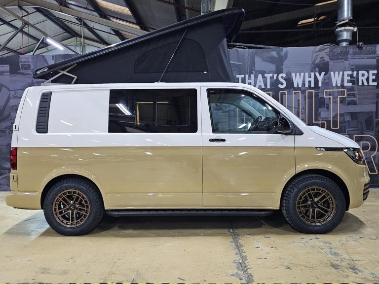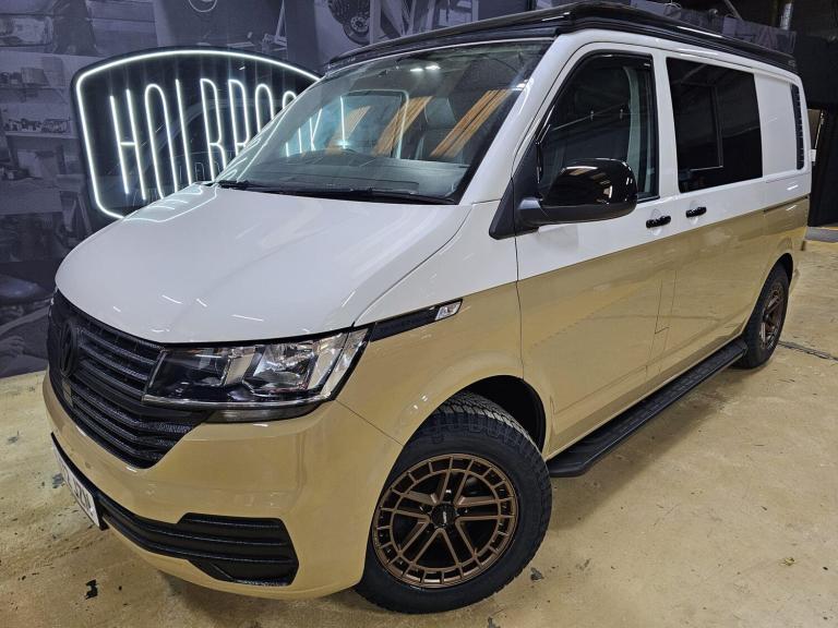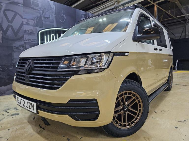 Here at Holbrook Customs with have another amazing creation.This Camper is simply amazing. Desert Sand paint job, Navis AT gold wheels with general grabber tyres. Full bespoke camper conversion with everything you could need and clever storage solutions and unique lighting. RIB bed, wesdub pop top, double swivel base on rails, fridge, sink and burner, full electrics 230v and 12v.Get in touch to view this amazing one off Camper. Has to much to list.Base van -SWB / manual 6 speed / 150bhp / AC / Cruise / sensors etc.Oil and filter changeFresh MOT6 months warranty Finance available and part exchanges welcome