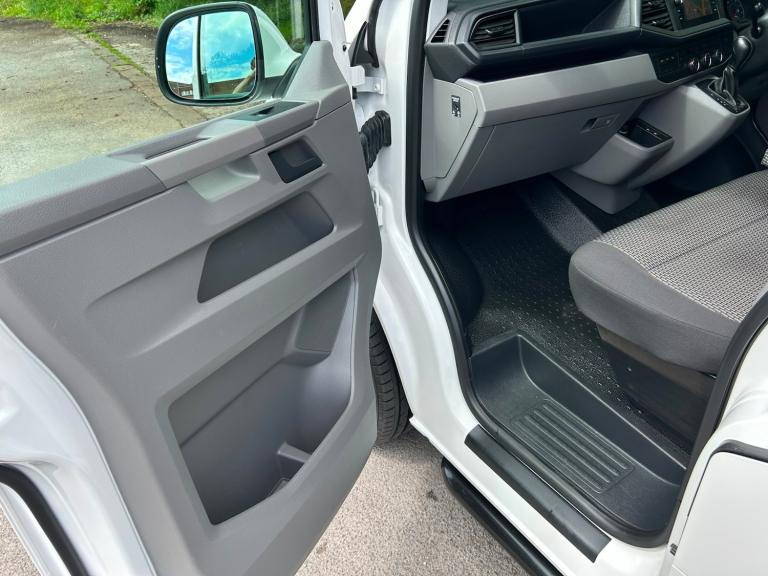 73/23 VW TRANSPORTER T6.1 TDI 204 7 SPEED DSG AUTO 6 SEAT KOMBI HIGHLINE LWB IN CANDY WHITE - EURO SIX WHICH HAS COVERED 22,000 MILES WITH ONE PREVIOUS OWNER AND FULL SERVICE HISTORY. THIS VEHICLE BENEFITS FROM AIR CONDITIONING, MULTI FUNCTION STEERING WHEEL, CRUISE CONTROL, FRONT AND REAR PARKING SENSORS WITH REAR VIEW CAMERA, HEATED WINDSCREEN, FRONT FOGS, LED FRONT HEADLIGHTS, OPENING SIDE WINDOWS, 2+1 REAR SEATS WITH ISOFIX, SAT NAV, DETACHABLE SWAN NECK TOWBAR, TWIN SIDE DOORS, BLUETOOTH PHONE PREP, USB INTERFACE, VW APP CONNECT, FULL GLOSS FRONT, TAILGATE, ELECTRIC WINDOWS AND MIRRORS, AUTOMATIC HEADLIGHTS, COLOUR CODED BUMPERS AND MIRRORS, FRONT SPOILER, REAR SPOILER, SPORTLINE SIDE BARS, ROOF BARS, 20in ALLOYS - RUBBER FLOORING, FLOCKED REAR - £38,995+VAT - WE CAN DELIVER - WE TAKE PART EXCHANGE - GOOD FINANCE RATES - WE HAVE OVER 40 TRANSPORTERS IN STOCK - SEE WEBSITE FOR MORE DETAILS - [Website URL removed]
