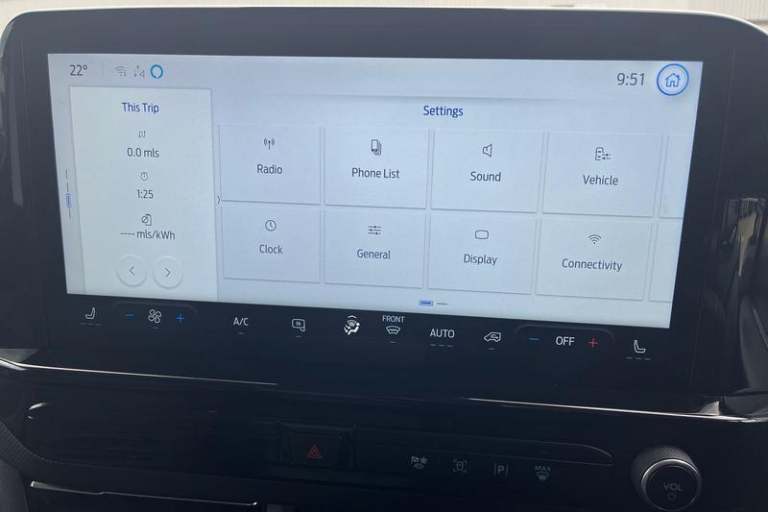 REAR VIEW CAMERA shows whats behind you on a screen in front of you on the dashboard - the system activates when you select reverse gear and using virtual guidelines can help you park, HILL START ASSIST temporarily stops you rolling backwards or forwards when making a hill start - maintaining pressure to the braking system for an extra 25 seconds giving you more time and control as you move your foot from the brake to the accelerator, QUICKCLEAR HEATED WINDSCREEN uses ultra thin filaments that superheat to de-ice and de-mist your windscreen as well as help de-freeze the wipers and works in seconds, FRONT AND REAR PARKING SENSORS are designed to help you park more confidently helping you judge the distance between your vehicle and obstacles both in front and behind you, BLUETOOTH HANDS FREE WITH VOICE CONTROL allows you to operate both your mobile phone and Ford audio system - controlling several functions using a set list of simple voice commands, CRUISE CONTROL provides extra comfort on longer journeys allowing you take your foot off the acceleration whilst just focusing on steering the vehicle, SYNC 4 includes Android Auto - Apple Car Play with advance speech recognition and over the air update capability, 13 Touchscreen, Automatic headlights, Electric front windows with one touch facility for driver and front passenger, 2 remote keys, PAS, Front mud flaps, Electronic Stability Programme, Body coloured front bumper, Courtesy light, Keyless entry and start, advance speech recognition,