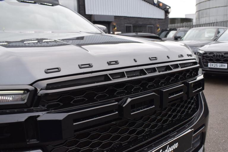 [£34999+VAT] 2024 ’24 Ford Ranger 2.0 TD EcoBlue Wildtrak Auto 4WD finished in Carbonised Grey Metallic with black Micro Rib Embossed leather interior. 35200 miles covered with service history to support up to and including 2026 with the latest having been performed in house ready for the next owner. Ford main dealer warranty in place until May 2027, supplied with all correct documentation, handbooks etc and subjected to our usual strict pre delivery inspection and preparation process ensuring all cosmetic and mechanical elements are in good order. This Ranger benefits from a full Obsidian 2025 conversion consisting of: Colour coded wide arch kit, LED ?? ?? Roof Mounted Light Bar, 20” OB3 black alloy wheels with all terrain tyres, gloss black Raptor style grille, gloss lower spoiler bar, gloss black light surrounds, wind deflectors, exterior black pack and Obsidian Branding Pack. Other highlights include: 360 Zone Lighting, Driver Assistance Package, Passive Keyless Entry and Start, Remote Starter, Heated Steering Wheel, Privacy Glass, Premium Front and Rear Floor Mats, Interior Ambient LED Lighting, Electronic Automatic Air Conditioning, Rain Sensitive Windshield Wipers, Dual Power Heated Fold Back Mirrors with Puddle Lamps, LED Front Fog Lamps, Partial TFT-LCD Instrument Cluster, Power Windows Front with One-Touch Up and Down, Power Rear Windows, Power Tailgate Lock, Roof Rails, Silver Matte Step Bar, Technology Pack 20, Thatcham Alarm, Thatcham Security System, Trailer Tow Class 1, Tyre Pressure Sensors and more.