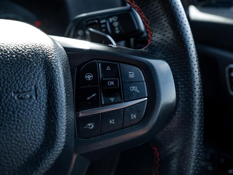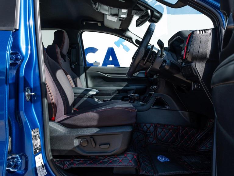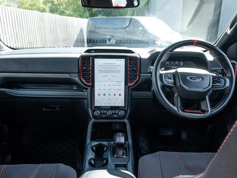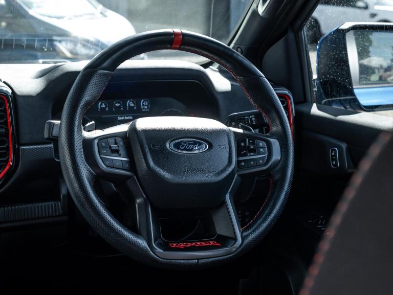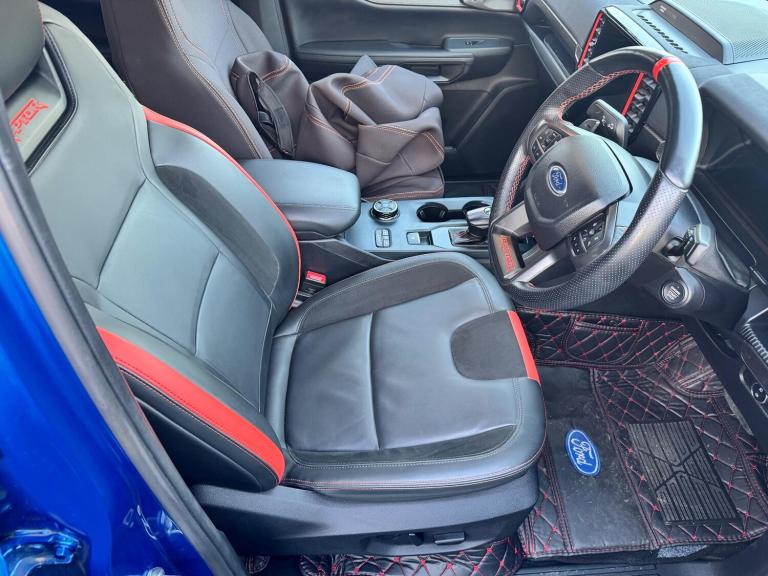 This 2024 Ford Ranger Raptor is a remarkable example, boasting a single owner from new. As a 3.0T V6 EcoBoost Raptor Auto 4WD Euro 6 (s/s) 4dr, this robust pickup is equipped with a powerful 3.0L Petrol Engine delivering an impressive 288 bhp. Its Four Wheel Drive system ensures capability in various conditions, while the Euro 6 emission class signifies its modern environmental standards. Inside, you'll find comfort and convenience with heated front seats, a premium branded sound system, and passive keyless entry and start. Safety and ease of use are enhanced by front parking aid and blind spot monitoring with trailering assistance.Raptor pack, raptor splash pack, exterior pack, super matte seat covers over leather seats, performance led headlights, raptor decals, front parking sensors, blind spot radar, tow bar, black matte alloys, orange stitching on seats, leather steering wheel with red stitching, cruise control, terrain control, side steps The Ford Ranger Raptor stands out with its exceptional features, indicating its superiority over other vehicles in its class. Its low insurance group rating is a significant advantage, making it a more economical choice for owners. The combination of its potent V6 EcoBoost engine, advanced technology, and the peace of mind that comes with a single owner makes this 2024 Ranger Raptor a truly compelling proposition for those seeking performance and refinement.V5 present, 2 keys