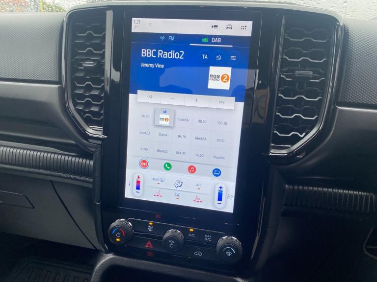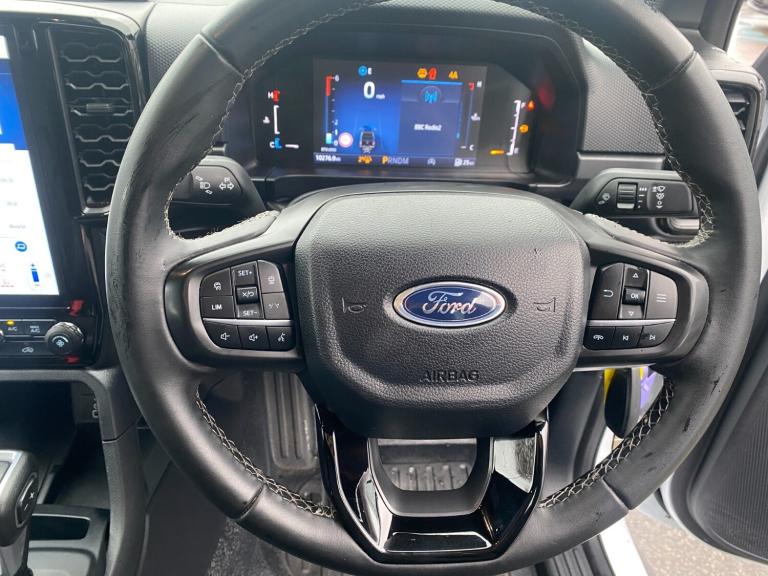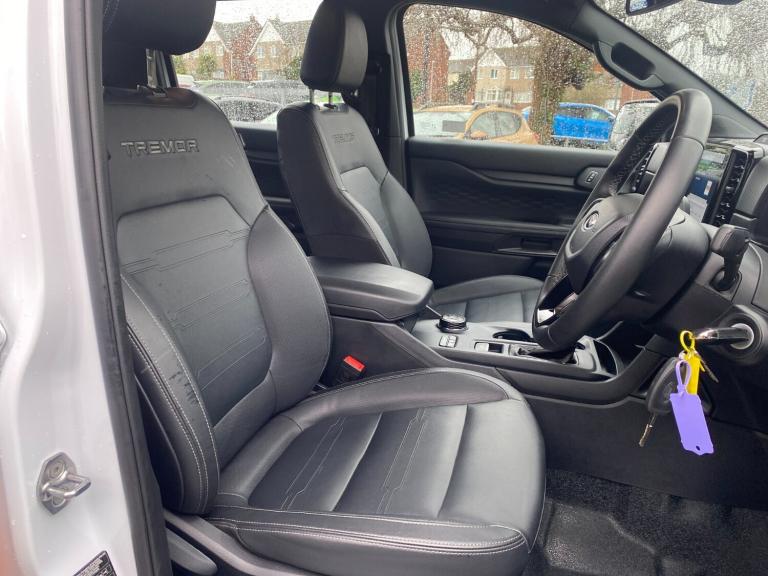 ..AEB and ISA, Conventional gearshift, Delete tachograph, Electric power assisted steering, Evasion steer assist, Fordpass connect modem including eCall and FordPass connectivity, Ice warning, Partial TFT/LCD instrument cluster, Passenger side roof mounted grab handle, Pre collision assist, Road departure warning, Traffic sign recognition, Trip computer, Accent colour door handles, Accent colour exterior mirrors, Acoustic laminated windscreen, Alternate design front towing hooks, Assisted conventional tailgate, Automatic headlights, Black rear underrun bar, Cast aluminium side step, Daytime running lights, Dual power heated fold back door mirror, E-marked glass, Electric rear window defroster, Electric windshield defroster, Electrochromic interior mirror, Fog lamp bezel, Front bumper with body colour lower accent, Front fender molded grill, Front fog lamps, Front headlamp leveling, Front splash guard, Fuel tank guard, Heavy duty side steps, High mounted stop lamp, Ladder rack, Large wheelarch flares, Level 1 halogen headlamps, Level 1 halogen Taillamps, Manual liftgate, Metal underbody protection, Narrow bodyside moulding, Non locking capless fuel fill, Outside thermometer, Painted accent colour rear bumper, Plastic side steps, Power front windows with one touch up/down, Power rear windows, Rain sensitive windshield wipers, Rear bumper extension, Rear bumper step, Rear fog lamps, Rear splash guard, Roll bar, Self coloured decklid handles, Self coloured grille, Standard green glass windscreen, Trailer tow class I, Trailer tow wiring, Tremor tailgate badge, Under hood engine cover, Cargo light, Console with double lid, Door handles with inside MIC, Driver and passenger sunvisor with mirror, Ebony headliner, Fold flat rear seat with durabale surface, Fresh air heater, Front throw in rubber floor mats, Glove box lids, High series air register, Less load rest, Less tie down rails and rope hooks, Overhead console with dome lamps, Pollen filter, Reach and rake adjustable steering column, Rear floor ducts, Rear throw in rubber floor mats, Roof storage for driver sunglasses, Steering wheel with multimedia controls, Tremor vinyl upholstery, Vinyl floor covering, Washer tank level warn lamp, Functional upgrade pack 3 - Ranger, Heavy duty terrain pack - Ranger, Interior trim pack 15 - Ranger, Rear seat pack 15 - Ranger, Tachograph prep pack - Ranger, Child proof rear door locks, Driver and passenger airbag, Driver knee airbag, Head and thorax airbag in 2nd row,