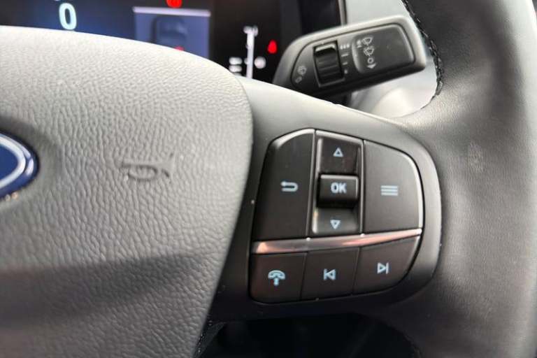 HEATED FRONT SEATS AND STEERING WHEEL Provide comfort in any weather, REAR VIEW CAMERA shows whats behind you on a screen in front of you on the dashboard - the system activates when you select reverse gear and using virtual guidelines can help you park, CRUISE CONTROL provides extra comfort on longer journeys allowing you take your foot off the acceleration whilst just focusing on steering the vehicle, BLUETOOTH HANDS FREE WITH VOICE CONTROL allows you to operate both your mobile phone and Ford audio system - controlling several functions using a set list of simple voice commands, QUICKCLEAR HEATED WINDSCREEN uses ultra thin filaments that superheat to de-ice and de-mist your windscreen as well as help de-freeze the wipers and works in seconds, FRONT AND REAR PARKING SENSORS are designed to help you park more confidently helping you judge the distance between your vehicle and obstacles both in front and behind you, Power front windows with power one touch up and down on both sides, Lane keeping alert, Automatic windshield wiper, Electronic air temperature control (EATC), 12V power socket in front, Traffic sign recognition, Intelligent Speed Assist, Driver's airbag, Heavy duty battery, Immobiliser, Passenger airbag, Wireless charging pad, 8 touchscreen, Reverse parking sensor, Trip computer, 16 10 spoke sparkle silver finish alloy wheels including locking wheel nut, Glovebox with lid, Steering wheel radio controls, Body colour upper front bumper, Child proof rear door locks,
