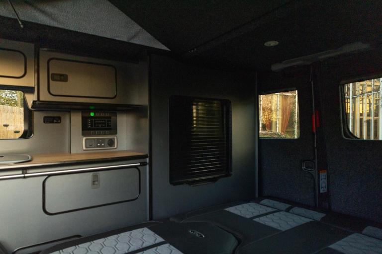 THE 2024 FORD TRANSIT CUSTOM POPTOP CAMPER VAN IS A FULLY EQUIPPED, LOW-MILEAGE CAMPER FEATURING A 2.0L DIESEL ENGINE, SMOOTH 8-SPEED AUTOMATIC GEARBOX, JUST 4,250 MILES, FULL SERVICE HISTORY, AND FORD WARRANTY UNTIL SEPTEMBER 2027. IT INCLUDES A MATTE STEEL KITCHEN WITH OAK-STYLE WORKTOP AND TABLE, 50L COMPRESSOR FRIDGE, SMEV 9222 DUAL HOB AND SINK, ALTRO FLOORING, WESTDUBZ POPTOP ROOF WITH SCENIC CANVAS, VULCAN M1 TESTED BED, UPGRADED DRIVERS WING-BACK SEAT, CUSTOM BLACK AND GREY UPHOLSTERY, DIESEL NIGHT HEATER, BLINDS TO ALL WINDOWS, FULL CARPET LINING, DACRON WARMTH AND SOUND INSULATION, LED SPOT LIGHTS, SPLIT-CHARGE SYSTEM, 110AH LEISURE BATTERY, BATTERY CHARGER, EXTERNAL 240V HOOK-UP AND TWIN 240V PLUG SOCKETS. EXTERIOR UPGRADES INCLUDE 20 CALIBRE ALLOYS, LOWERING SPRINGS, GLOSS BLACK GRILLE, XC FRONT AND REAR BUMPERS, CANARD TRIMS, SIDE SKIRTS AND REAR SPOILER. MODERN DRIVING AND COMFORT FEATURES INCLUDE A/C, FRONT AND REAR PARKING SENSORS, REAR CAMERA, ELECTRIC HEATED MIRRORS, HEATED SEATS, KEYLESS ENTRY AND START WITH SAFELOCK, LED FRONT AND REAR LIGHTS, AUTO HEADLIGHTS, MULTI-FUNCTIONAL STEERING WHEEL, DIGITAL DASH, CRUISE CONTROL, APPLE CARPLAY, DAB RADIO, USB-C AND HANDS-FREE CONNECTIVITY AND LOTS MORE