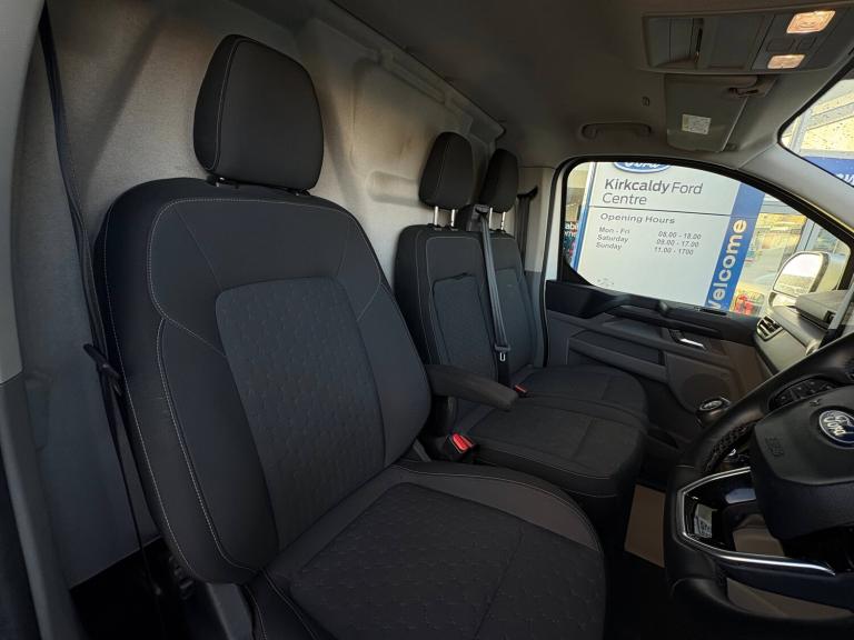 Passenger airbag, 13 inch Touchscreen, 5G embedded modem, AECS NO SMS/Roll Detect 2G, PAS, Tyre pressure monitor, Automatic headlights, Body coloured door mirrors, Body coloured front bumper, Body coloured rear bumpers, Daytime running lights, Dual heated auto fold power exterior mirror, Electric front windows with one touch facility for driver and front passenger, Fixed DSS LED headlamps with auto high headlamp, Front splash guards, Kerbside side load doors, Low roof line, Molded load floor liner, Quickclear front window defroster, Rear cargo hinged door, Rear splash guards, Solid paint, Tinted glass, Trailer sway control, 6 Load compartment tie down loops, Automatic air conditioning, Courtesy light, Full height polypro interior trim panels, Full metal bulkhead, Interior grab handle with driver's sunglasses holder, LED lights, Locking glove box lid, Sensico gearshift knob, Sensico steering wheel, Super bright load compartment lights, Comfort dual passenger seat pack - Transit custom Limited, Driver assistance pack 2 - Transit custom, 2 remote keys, Alcohol Interlock wiring preparation pack, Keyless entry and start, Locking wheel lug nut, Power door dead locks, Standard unlocking, Thatcham category 1 alarm, 20L AdBlue tank, 55 litre fuel tank, ABS, Diesel particulate filter, ESP, Hill launch assist, Traction control, SYNC 4 - Android Auto/Apple Car Play,advance speech recognition,over the air update capability, 16 inch alloy wheels in sparkle silver, 16 inch Steel spare wheel, Full wheelcovers