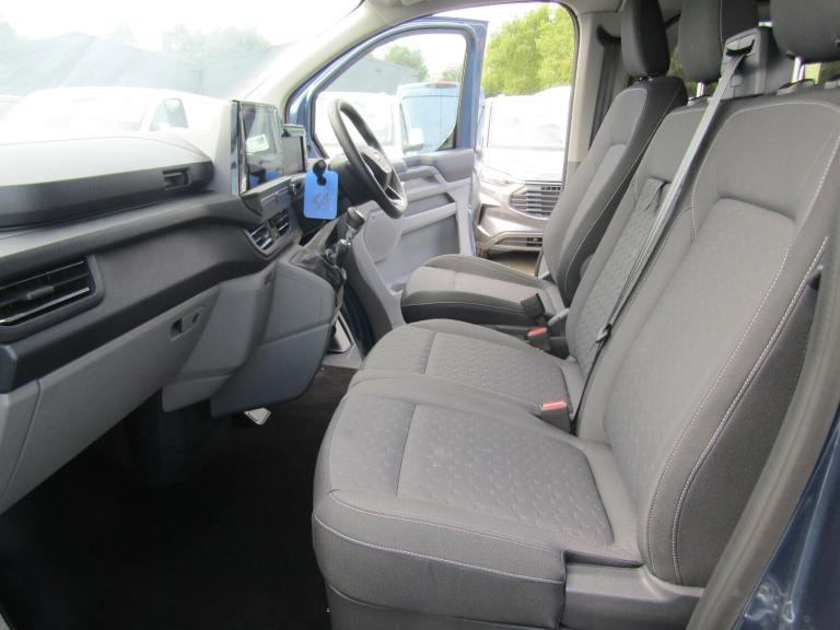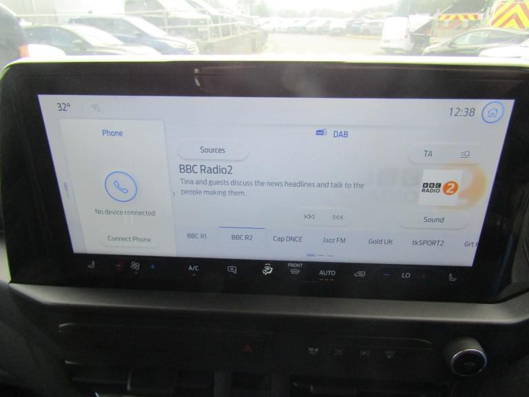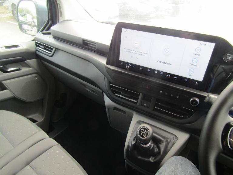 ..13'' Touchscreen, 5G embedded modem, AECS NO SMS/Roll Detect 2G, PAS, Rear USB charge port, Tyre pressure monitor, SYNC 4 - Android Auto/Apple Car Play,advance speech recognition,over the air update capability, Automatic headlights, Body coloured door mirrors, Body coloured front bumper, Body coloured rear bumpers, Daytime running lights, Dual side load doors, Electric front windows with one touch facility for driver and front passenger, Fixed DSS LED headlamps with auto high headlamp, Front splash guards, Low roof line, Molded load floor liner, Quickclear front window defroster, Rear cargo hinged door, Rear splash guards, Trailer sway control, 3 Seat Rear seats with under seat stowage, 6 Load compartment tie down loops, Carpet floor in first row and rubber in second row, Courtesy light, DCiV Moulded polymer bulkhead, Half height polypro interior trim panels, Interior grab handle with driver's sunglasses holder, LED lights, Locking glove box lid, Rear reading light, Sensico gearshift knob, Super bright load compartment lights, Passenger airbag, 2 remote keys, Alcohol Interlock wiring preparation pack, Keyless entry and start, Locking wheel lug nut, Thatcham category 1 alarm, 20L AdBlue tank, ABS, Diesel particulate filter, ESP, Hill launch assist, Traction control, 16'' Steel spare wheel, Full wheelcovers