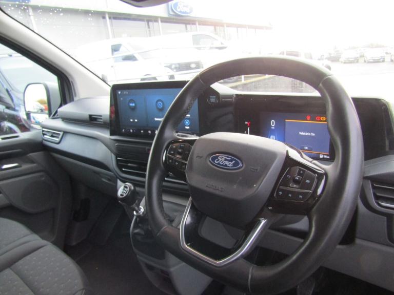..13'' Touchscreen, 5G embedded modem, AECS NO SMS/Roll Detect 2G, PAS, Tyre pressure monitor, SYNC 4 - Android Auto/Apple Car Play,advance speech recognition,over the air update capability, Automatic headlights, Body coloured door mirrors, Body coloured front bumper, Body coloured rear bumpers, Daytime running lights, Electric front windows with one touch facility for driver and front passenger, Fixed DSS LED headlamps with auto high headlamp, Front splash guards, Low roof line, Quickclear front window defroster, Rear cargo hinged door, Rear splash guards, Trailer sway control, 6 Load compartment tie down loops, Courtesy light, Interior grab handle with driver's sunglasses holder, LED lights, Locking glove box lid, Sensico gearshift knob, Super bright load compartment lights, Passenger airbag, 2 remote keys, Alcohol Interlock wiring preparation pack, Keyless entry and start, Locking wheel lug nut, Thatcham category 1 alarm, 20L AdBlue tank, ABS, Diesel particulate filter, ESP, Hill launch assist, Traction control, 16'' Steel spare wheel, Full wheelcovers
