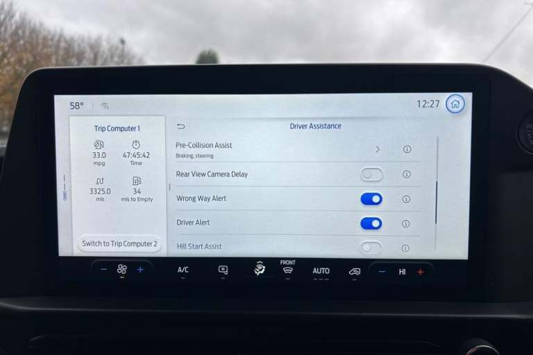 REAR VIEW CAMERA shows whats behind you on a screen in front of you on the dashboard - the system activates when you select reverse gear and using virtual guidelines can help you park, HILL START ASSIST temporarily stops you rolling backwards or forwards when making a hill start - maintaining pressure to the braking system for an extra 25 seconds giving you more time and control as you move your foot from the brake to the accelerator, QUICKCLEAR HEATED WINDSCREEN uses ultra thin filaments that superheat to de-ice and de-mist your windscreen as well as help de-freeze the wipers and works in seconds, BLUETOOTH HANDS FREE WITH VOICE CONTROL allows you to operate both your mobile phone and Ford audio system - controlling several functions using a set list of simple voice commands, CRUISE CONTROL provides extra comfort on longer journeys allowing you take your foot off the acceleration whilst just focusing on steering the vehicle, FRONT AND REAR PARKING SENSORS are designed to help you park more confidently helping you judge the distance between your vehicle and obstacles both in front and behind you, SYNC 4 includes Android Auto - Apple Car Play with advance speech recognition and over the air update capability, Automatic headlights, 13 Touchscreen, Hill launch assist, Electronic Stability Programme, Courtesy light, Traction control, Tyre pressure monitor, Full wheelcovers, Part body colour front bumper, 6 Load compartment tie down loops, Diesel particulate filter, Daytime running