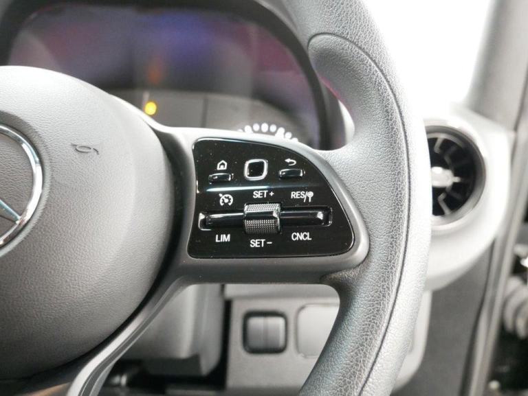 , 16in Steel Wheels, 270 Degree Double-Wing Rear-End Doors - Opening to Side Wall, ABS - Anti-Lock Braking System, ATTENTION Assist, Active Brake ASSIST, Adaptive Brake Lights, Adaptive ESP - Electronic Stability Programme, Additional USB-C, Airbag - Driver, Alternator 14V - 180A, Anti-Theft Protection Package, Armrest for Drivers Seat, Breakdown Management, Bulkhead - Full-Width Partition, Comfort Driver Seat, Comfort Overhead Control Panel, Communication Module - LTE - For Digital Services, Crosswind Assist, Cruise Control, DAB Digital Radio Tuner, Doors - Sliding Side Load Door on Left Side, Double Co-Driver Seat, Double Locks, Drivers Seat, Electric Windows - Front, Entrance Handle on Right-hand Rear Corner Pillar, Fuel Filter with Water Separator, Full Wheel Covers, Grab Handle - Load Compartment Sliding Door at Partition, Heat-Insulating Glass with Filter Band on Windscreen, Heavy Duty Battery - 12V 92Ah, Hill Start Assist, Hydraulic Jack, Integrated Connected Alarm System, Interior Courtesy Light Door Operated, Jump Start Contact, Keyless Start, Lighting - Headlight Assistant, Lights for Left Hand Traffic, Longitudinal Member Reinforcement, MBUX Multimedia System with 7-inch Touch Screen, Mercedes-Benz Emergency Call System - eCall, Multifunction Steering Wheel, Outside Air Temperature Gauge, Parking Package with Reversing Camera, Power-Assisted Steering, Pre-Installation for Switch Panel, Prewiring for Parameterizable Special Module - PSM, Radiator Grille Frame in Vehicle Colour, Remote Central Locking, Seat Belt Reminder for Co-Driver Seat, Shelf Above Windscreen, Side Marker Lights, Spare Wheel, Spare Wheel Bracket Below Frame End, Steering Column - Manually Adjustable, Steering Wheel - Rake and Reach Adjustment, Storage - Hinged Lid for Stowage Compartment, Storage Compartment Underneath Cockpit, Summer Tyres, Suspension - Stabilisation Level I, TEMPMATIC Semi-Automatic Climate Control System, Terminal Strip for Electrical Connection, Third Brake Light, Tyres 235-65 R16 C, Tyres Resistance-Optimised, Tyres without Name of Make, USB-C Socket - 5V, USB-C and Bluetooth Interface - WIFI Hotspot -Apple CarPlay - Android Auto and a DAB Radio, VIN Visible from Outside, Wood Load Flooring
