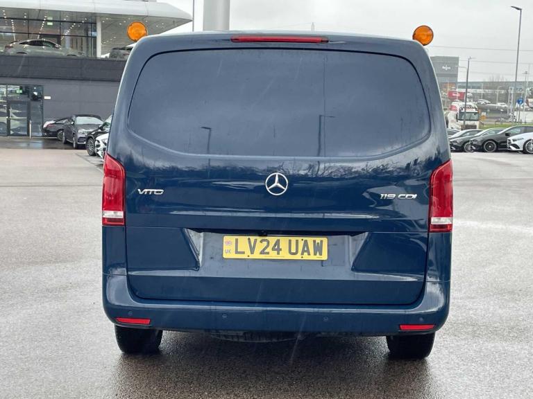 This 2024 Mercedes Benz Vito 119 CDI Premium is a Mercedes Benz manufacturer approved vehicle, boasting a full dealership service history for your peace of mind. This L2 Long Wheelbase model features a powerful 2.0 litre diesel engine delivering 187 bhp, coupled with a smooth G Tronic automatic transmission and rear wheel drive. As a Euro 6 compliant vehicle, it meets stringent emission standards, making it a responsible choice for your business needs.With an impressive cargo volume of 6000 litres, this Vito offers substantial space for all your equipment and deliveries, highlighting its superior capacity compared to other vehicles in its class. The Premium trim level ensures a comfortable and well equipped driving experience, making every journey, whether for work or personal use, an enjoyable one. This Mercedes Benz Vito represents a blend of performance, practicality, and premium quality.