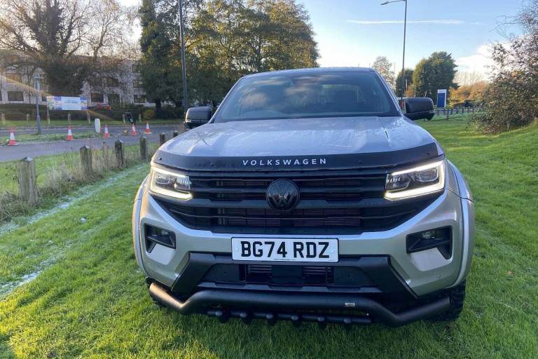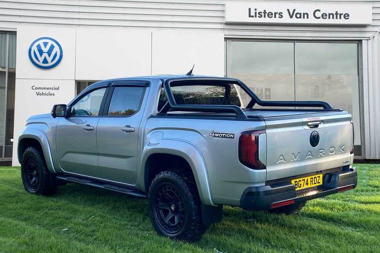 Available from 02/01/2025. Volkswagen Amarok Diesel D/Cab Pick Up Style 2.0 TDI 205 4MOTION Auto in Silver. Specification Includes Exterior Features,Metallic paint,Paint - Metallic,Metallic - Medium grey,Exterior Features,Dark-tinted privacy glass rear side windows and rear window,Front and rear power windows,Heated rear window,Windshield sound-insulating with windshield heater,Windshield wiper intermittent control with rain sensor,Standard suspension,Black bumper in rear with chrome-plated styling elements,Body coloured exterior mirror housings and door handles,Body coloured front bumper,Body-colored rear gate handle,Chrome styling roll bar,Diversity antenna,Fuel filler door with integrated misfueling prevention device,Mud flaps front and rear,Radiator grille with chrome bezel,Satin air vents,Step with chrome insert,Without hardtop,Without roof rails/roof rack,Without underride guard,Advanced high-beam control Dynamic Light Assist for IQ.LIGHT LED matrix headlamps,Dynamic headlight range control,IQ Light LED matrix headlamps,LED front fog lamps,LED rear combination lamps,Safety,Automatic post collision braking system,Electronic parking brake,Electronic stability control (ESC) and Electromechanical brake booster,Adaptive cruise control ACC with predictive speed limiter,Area View 360 camera,Autonomous emergency braking front assist with monitoring and braking for vehicles- pedestrians- cyclists,Lane keeping system lane assist and lane change system side assist,Park assist including park distance control in front and rear- rear traffic alert,PAS,Without manual activation of 360-degree surround and cargo area lighting,Without trailer maneuvering system Trailer Assist,Exterior mirrors- power-adjustable- heated and power-folding- with surround lighting,Curtain and side airbags with center airbag,Front passenger airbag deactivation,Knee airbags for driver and front passenger,Without fire extinguisher,Without first aid kit,Driver Convenience,Selector lever,Miscellaneous,12-inch Infotainment system,Digital Cockpit 12-inch,Dynamic road sign display,eCall emergency system,Navigation system,Without tachograph,Emission standard,Particle filter,Stop/start function,Electrical,120-V/230-V outlet in rear center console and cargo area,Alternator - 250A,Without electrical interface for external use- 6 switches in overhead console,Audio / Communications,1 USB charging socket on the interior rearview mirror,6 speakers,AM / FM antenna and digital radio reception