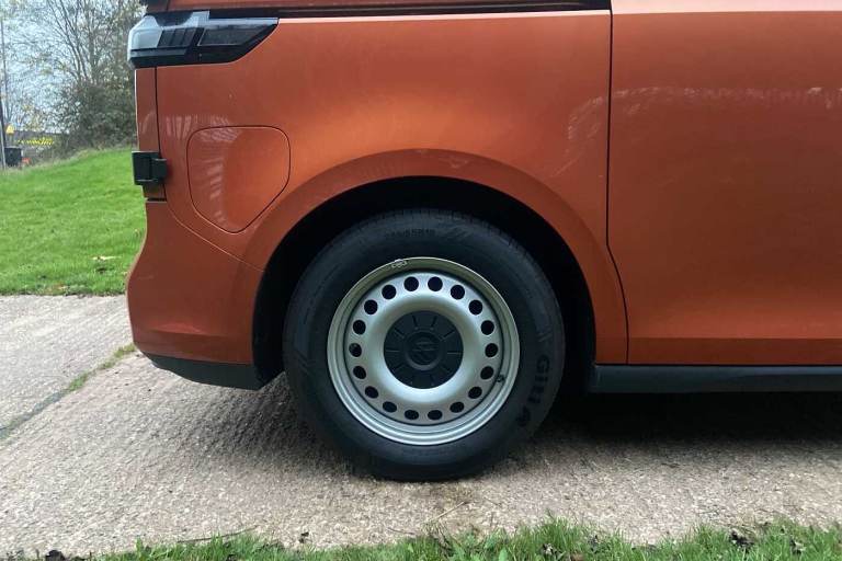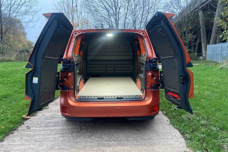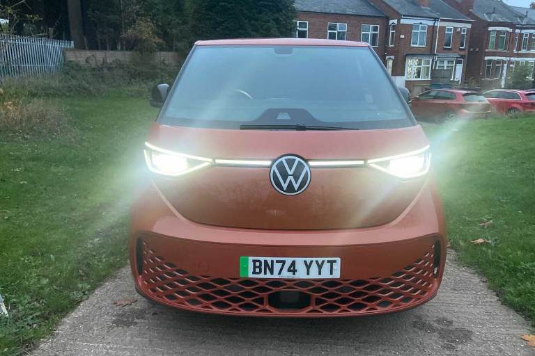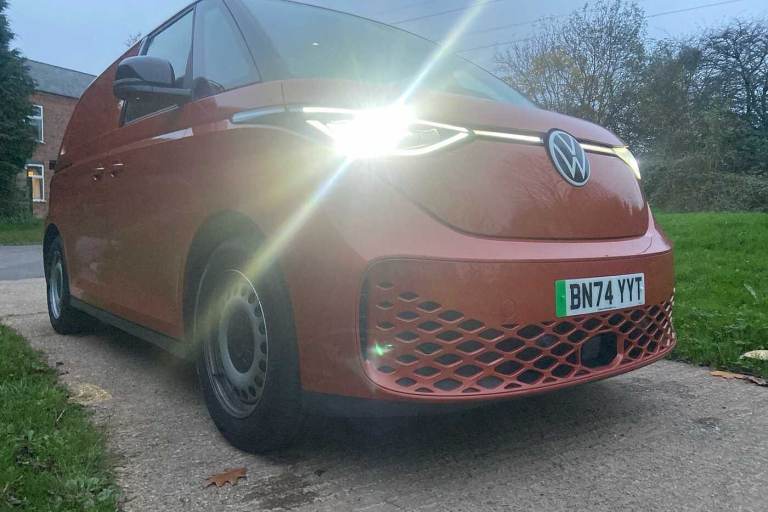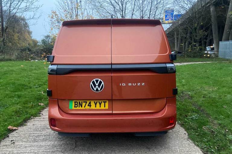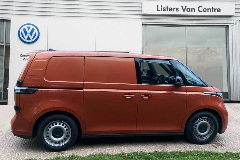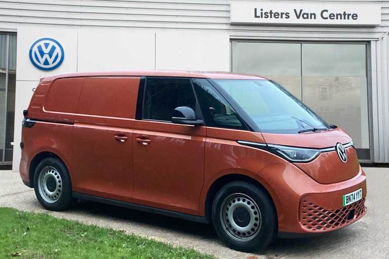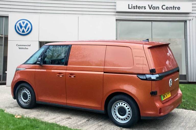 Available from 09/03/2025. Volkswagen ID. Buzz Cargo 150kW Commerce Plus 77kWh Auto in Orange. Specification Includes Interior Features,Pedals in stainless steel with Play and Pause symbols,Doors,Rear wing door without window aperture,Packs,IQ. Light Package - ID.Buzz Cargo,Paint - Metallic,Metallic - Energetic orange,Exterior Features,Heat reflecting glass,Heated windscreen,Body coloured bumpers,Body coloured door handles,Unique ID Buzz badging,Safety,Autonomous emergency braking front assist with monitoring and braking for vehicles- pedestrians- cyclists,Intelligent Park Assist incl. Park Assist with memory function and Park Assistance Plus with park distance control,PAS,Folding door mirrors with front passenger lowering function,Driver and front passenger airbags,First aid kit with warning triangle and safety vest,Front passenger airbag deactivation,Seat belt reminder with electric contact in buckle,Tyre pressure monitoring system (TPMS),Driver Convenience,Car2X technology,Driver alert system,Miscellaneous,eCall emergency system,Electronic engine sound,Trim,Black decorative trim,Soul - soul dashboard,Heated front seats,Single driver seat with manual height adjustment,Audio / Communications,2 speakers (full-range),2 USB-C ports in dashboard and 2 USB-C charging sockets in front,App-Connect incl. App-Connect Wireless for Apple CarPlay and Android Auto,Digital radio reception (DAB+),Discover Pro navigation with 10in screen,We Connect preparation,Interior Features,Carpet in Black,Door trim panel and armrest in plastic,Illuminated mirrors in sun vinsors with airbag label on sun visor and B-pillar,Lockable glovebox,Robust floor covering in cab,Steering wheel- dashboard and central controls in black,LED load compartment lighting,Load Area,Wooden floor covering in load compartment,Security,Anti-theft alarm system- interior monitoring in cab- back-up horn and towing protection,Keyless start incl central locking with two remote control folding keys incl interior control safelock and Illuminated door handle recesses,Vehicle Charging,11 kW AC charging power,Charging cable mode 3 type 2- 32 A (6 metres length).