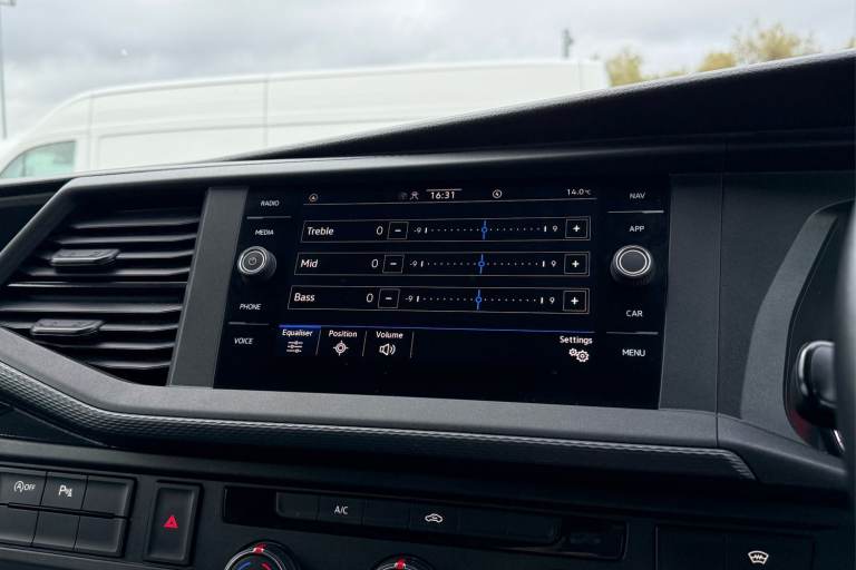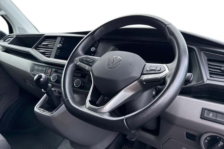 The Volkswagen Transporter T28 Panel Van Highline SWB, finished in Deep Black, combines practical functionality with premium comfort and technology, making it ideal for both business and everyday use. Powered by a 2.0-litre diesel engine paired with a smooth manual transmission, it delivers efficient performance and reliability on every journey. On the exterior, 16-inch Clayton alloy wheels give the van a stylish and confident stance. The LED headlamps with high-beam control and automatic headlight activation ensure excellent visibility in all driving conditions. The light and rain sensors automatically adjust the headlights and wipers for convenience and safety, while heated, power-adjustable, and folding mirrors make daily driving and parking effortless. Front and rear parking sensors further enhance manoeuvrability, offering confidence even in tighter urban spaces. The load area features a ply-lined interior with reinforced lashing rings for a secure load restraint system. Access is convenient through the wide-opening tailgate and side sliding door, ensuring ease of loading and unloading from multiple angles. Air conditioning maintains a pleasant temperature throughout the day, while the leather-wrapped multifunction steering wheel provides easy access to key controls. Adaptive cruise control helps maintain a steady speed and safe distance from traffic ahead, making longer journeys more comfortable and stress-free. Technology is seamlessly integrated through the compos...