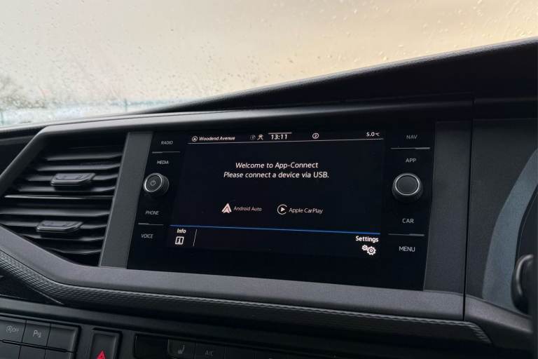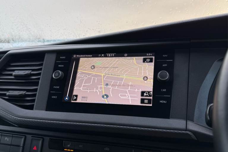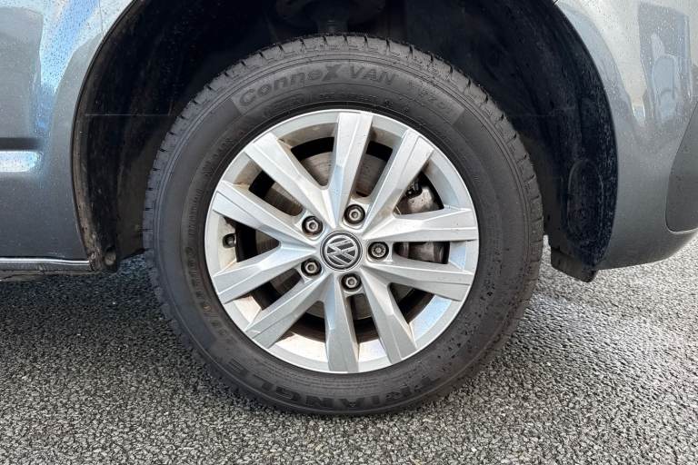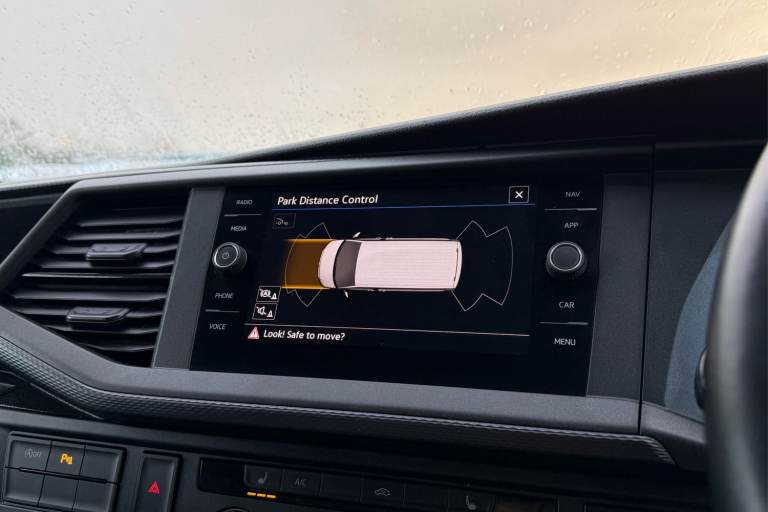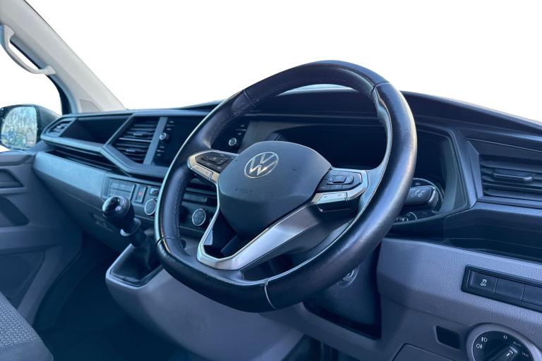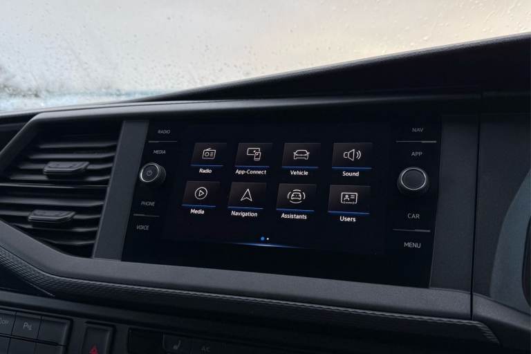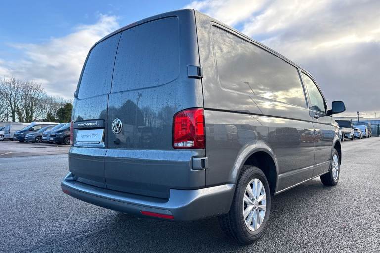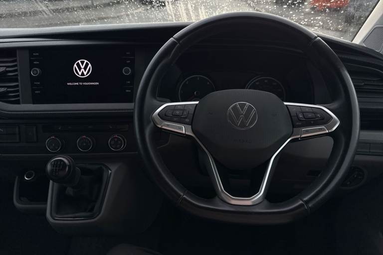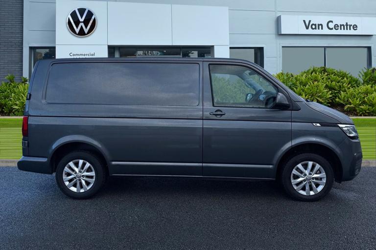 The Volkswagen Transporter T28 Highline SWB is finished in Indium Grey and powered by a reliable 2.0-litre TDI diesel engine paired with a 5-speed manual transmission, delivering efficient and dependable performance for everyday business use. The exterior is equipped with 16-inch Clayton alloy wheels and enhanced by the Lights & Vision package. Features include LED headlamps with High Beam Assist, automatic headlight control, and rain-sensing windscreen wipers for improved visibility in all conditions. Heated, power-adjustable and power-folding wing mirrors add everyday convenience, while front and rear parking sensors and a rear-view camera make manoeuvring and reversing simple and stress-free. The ply-lined load space is practical and secure, accessed via rear wing doors or a side sliding door. Reinforced lashing rings allow loads to be safely secured during transit, making it ideal for professional use. Inside the cab, comfort is prioritised with heated seats and an armrest for the right-hand front seat. The leather-wrapped multifunction steering wheel places key controls within easy reach, while adaptive cruise control with a speed limiter supports relaxed and controlled driving on longer journeys. Technology and connectivity are well catered for with the Composition Colour radio featuring a 6.5-inch touchscreen, DAB+ digital radio reception, mobile phone interface, and Volkswagen App Connect. The Discover Navigation system ensures confident route planning wherever yo...