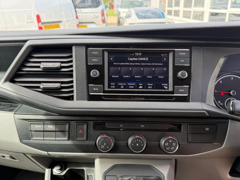 This 2024 Volkswagen Transporter boasts a full service history, with its last service completed on 22nd July 2025 at 17,493 miles, and has had only one owner. This TDI T28 Highline DSG FWD SWB Euro 6 (s/s) 5dr model is equipped with a powerful 2.0 litre diesel engine delivering 148 bhp. For convenience and comfort, it features parking sensors front and rear, electronically controlled air conditioning with climate control, and a Composition Colour DAB Plus Radio System with a 6.5 inch touch screen and Bluetooth connectivity. The vehicle also benefits from automatic headlight activation with daytime running lights and adaptive cruise control.