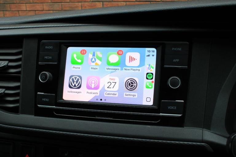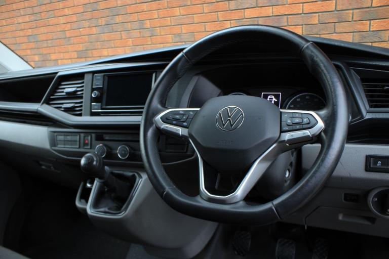 OVER 200 VEHICLES IN GROUP STOCK. Finished in Deep Black pearl effect with titanium black double grid cloth interior. Features include Apple CarPlay and Android Auto, front and rear park distance control with rear view camera, heated seats, front splitter and rear spoiler in gloss black, 20 multispoke alloy wheels in gloss black, air conditioning, Bluetooth connectivity with media streaming, DAB digital radio, halogen headlights with daytime running lights, cruise control, front assist, heated electrically adjustable exterior mirrors, sliding nearside rear door, full height steel bulkhead, dual passenger seat, drivers armrest, voice control, multifunctional leather steering wheel, 5 speed manual transmission plus much more standard specification. This Transporter is offered in excellent condition having covered 31200 miles from new by its 1 owner. The van comes complete with the reassurance of a remaining manufacturers warranty until May 2027 and a comprehensive service history consisting of the following 08/01/25 at 13826 miles, 08/05/25 at 22191 miles and 12/11/25 at 31097 miles. Plus VAT. GOOGLE YORKSHIRE VEHICLE SOLUTIONS FOR OUR CUSTOMER REVIEWS. PLEASE CALL OR E-MAIL FOR FURTHER DETAILS OR TO ARRANGE A PERSONALISED VIDEO OR VIEWING. THIS DEALER HAS COMMITTED TO AA CARS STANDARDS AND IS APPROVED BY THE CHARTERED TRADING STANDARDS INSTITUTE.