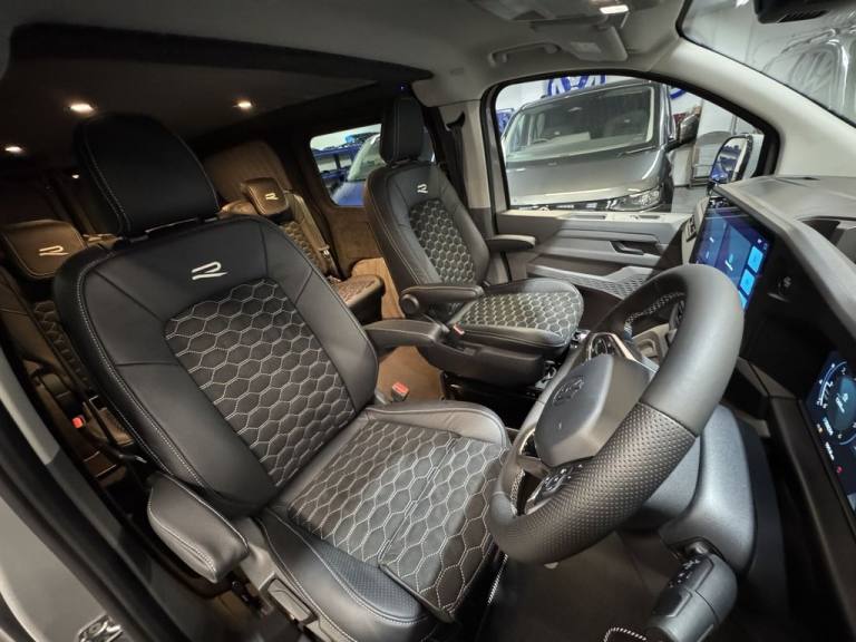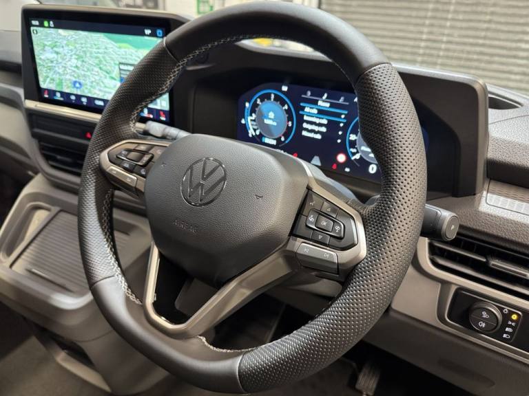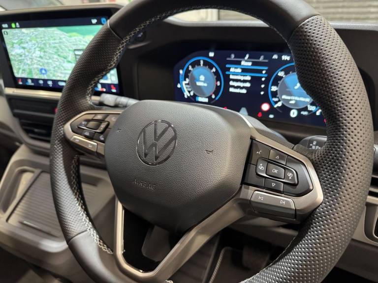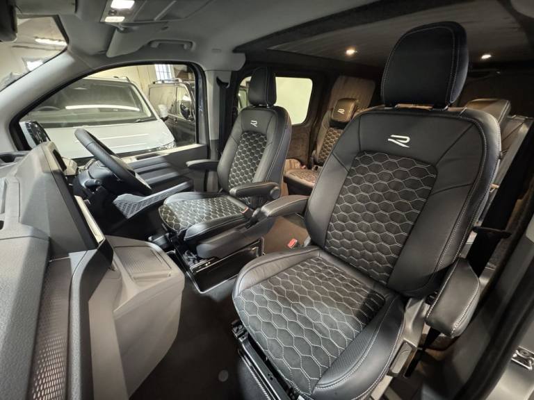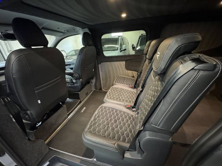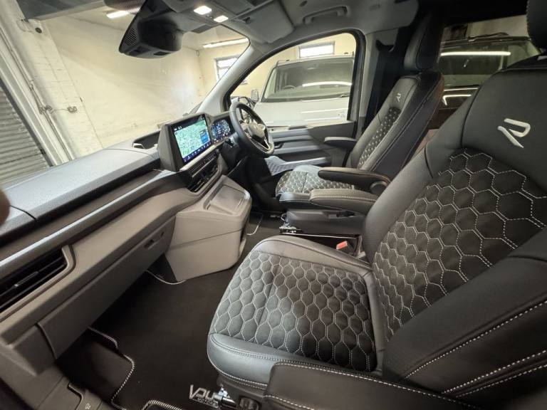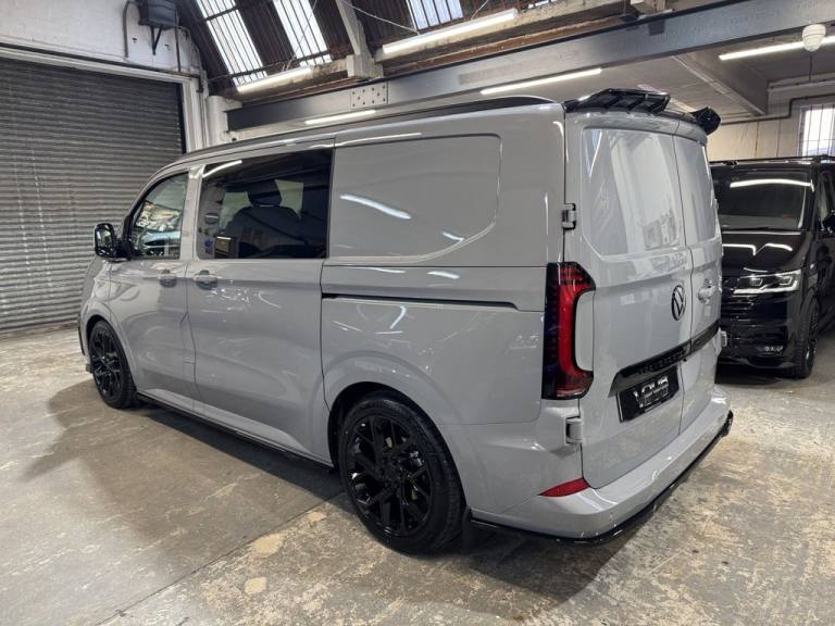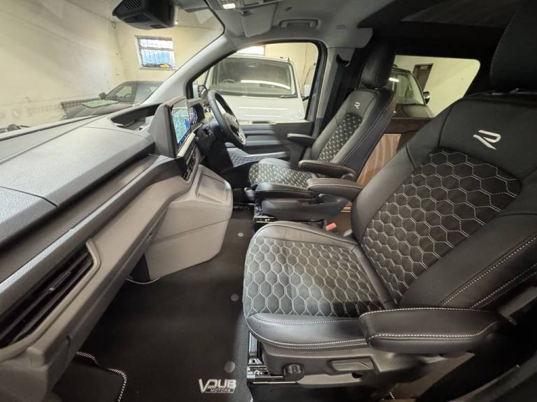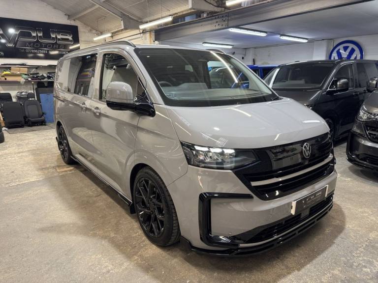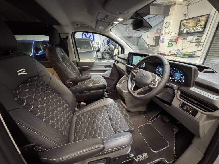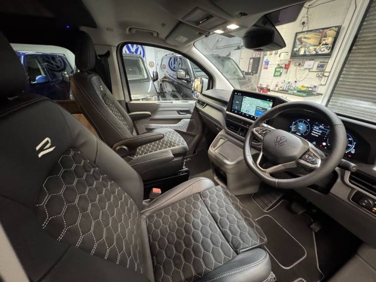 Volkswagen "T7" Custom Kombi, new generation Transporter 150tdi automatic, Commerce Plus T30 SWB. 75 registration with 95 miles. Commerce Plus with factory optioned LED lights, captain passenger seat, rear camera, extended dash console, connectivity pack, 70L fuel tank, roof rails, twin side doors, comfort drivers seat, and twin rear doors. Custom Kombi with our rear flexi seat system consisting of 3 individual rear seats that are position adjustable, recline, fold flat, removable, create a centre table and have Isofix to the outer seats. Reupholstered in black leather and Alcantara with Horizontal Hex design and silver grey stitch-work. Fully lined out to the rear with light grey suede effect over dark grey automotive carpeting. Sound deadened and insulated. To complete this stunning interior our T7 Custom Kombi also includes the Vdub GT steering with silver grey stitch-work. Finished in Stone Grey this Plus specification Transporter is further enhanced with the Vdub exterior styling works to include 20" Velar alloy wheels, lowered suspension, gloss black colour coding to the front grill, body colour and gloss black VW badges, gloss black front splitter, side + rear skirts and rear spoiler. Also available in Metallic Graphite Dust Grey. Finance arranged and part exchange vehicles welcomed. Viewing by appointment, please message or ring to arrange. Mainland UK delivery available. Vdub Motors…home of the Custom Kombi.150ps automatic , Twin side doors + rear barn doors, Stone Grey, Vdub Flexi seat system Custom Kombi, Finance arranged and px vehicles welcome, 13in Digital Drivers Display, 13in Touchscreen Infotaintment Display with Wireless App Connect and DAB Radio, 16in Steel Wheels - 6.5J, 2 LED Lights in Roof of Load Compartment, 2 x 15-W USB-C Data and Charging Ports in Dashboard and 1 x USB-C Plus USB-A Center Bottom, 2-Seater Bench and Single Drivers Seat in Cab, 2-Seater Bench with Load-Through System and Folding Table which Pulls Out From Middle Seat, 4 Speakers - x2 in Dashboard - x2 in Cab Doors, 4-Way Head Restraints - Adjustable in Height and Tilt, 5 Plus Promise, 55L Fuel Tank, 5G Modem, 6-Way Adjustable Driver Seat, AGM Vehicle Battery and 2nd Battery - Under Driver Seat - Both Batteries with 80Ah, Air Conditioning System with Manual Control in Cab, Alternator - 230A, Anti-Theft Alarm System with Interior Monitoring - Backup Horn and Towing Protection, Black Plastic Scuff Plate for Sliding Door, Black Plastic Scuff Plate in Front, Body-Coloured Add-On Parts and Body-Coloured Radiator Grille, Body-Coloured Exterior Mirror Housings and Door Handles, Body-coloured Bumpers in Front and Rear, Cruise Control System with Predictive Speed Limiter, Double-Sound Horn, Drivers and Front Passengers Airbags with Front Passenger Airbag Deactivation Switch, Dynamic Road Sign Display and Wrong-Way Driver Warning, ESC - Electronic Stability Control, Electronic Engine Immobiliser, Exterior Mirrors - Power-Adjustable - Heated, Front Collision Warning with Braking, Front and Curtain Airbags for Driver and Front Passenger, Glove Compartment with Lid, Goodyear Summer Tyres, Heat-Reflecting Side Window Glass, High-Beam Control, Interior Lights for Cab, Interior Trim Level Transporter, Keyless Start with SAFELOCK, LED Headlights with Separate LED Daytime Running Lights, LED Rear Combination Lamps, Laminated Windshield Made of Heat-Reflecting Glass, Lane Assist, Lashing Rings for Reinforced Floor Covering, Leatherette-Wrapped Multi-Function Steering Wheel, Manually Adjustable 2-Way Lumbar Support for Drivers Seat, Metal Partition - High, Mud Flaps - Front and Rear, Narrow Centre Console with Cup Holder and Compartment for Mobile Phone, Overhead Storage Compartment, Parking Package Plus, Parking Sensors - Front and Rear, Preparation for VW Connect and VW Connect Plus, Preperation for Alcohol Ignition Interlock, Rear Wing Doors, Roof Grab Handles on Driver Side and Front Passenger