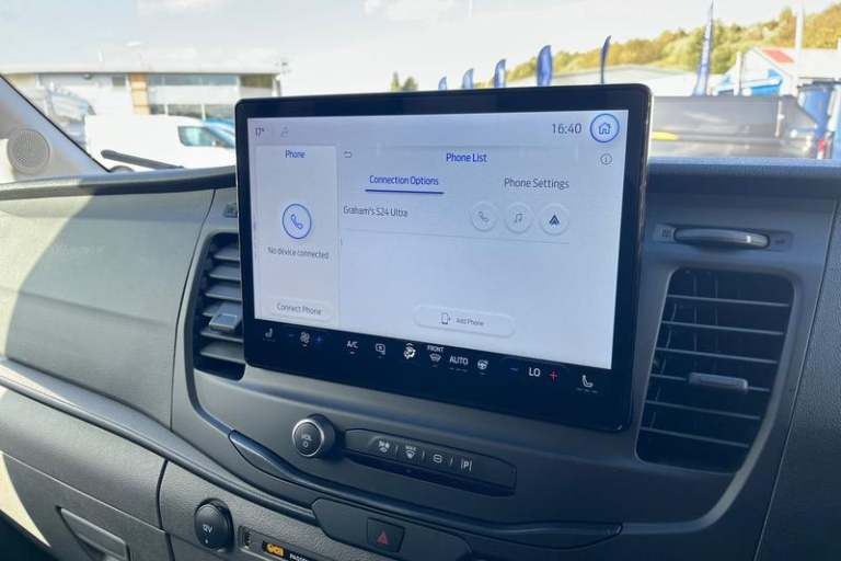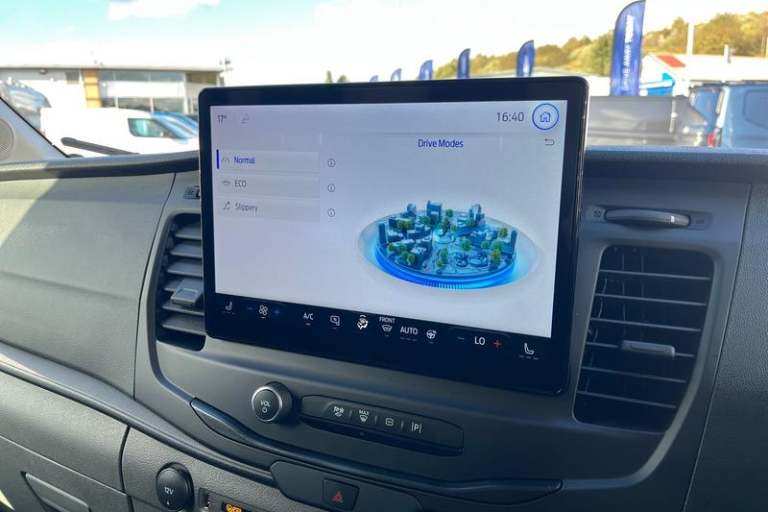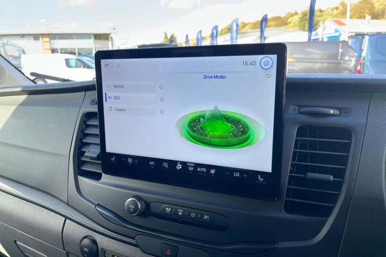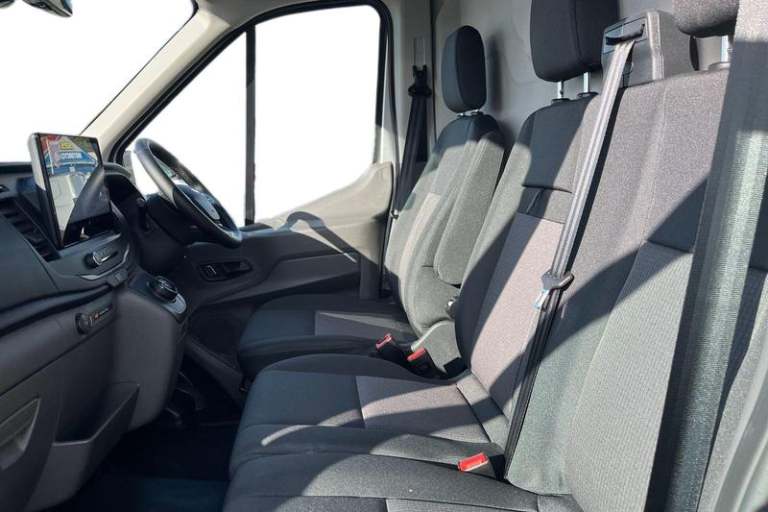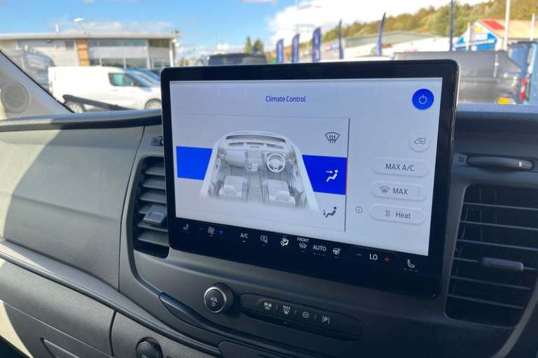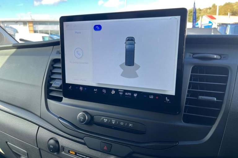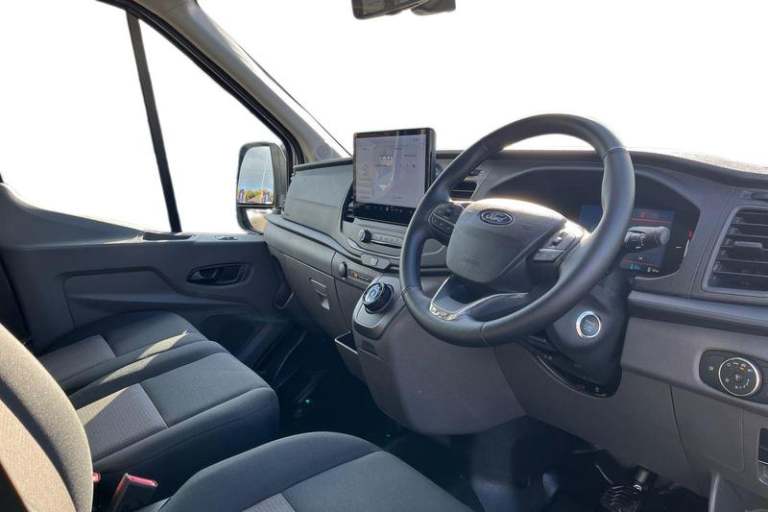 REAR PARKING SENSORS are designed to help you park more confidently helping you judge the distance between your vehicle and obstacles, HEATED FRONT SEATS Provide comfort in any weather, CRUISE CONTROL provides extra comfort on longer journeys allowing you take your foot off the acceleration whilst just focusing on steering the vehicle, PRO POWER ONBOARD allows you to plug in electric tools and laptops and more while on the go - An integrated mobile power source delivering up to 23Kw of power, DIGITAL REAR VIEW MIRROR is an intelligent rear vision system that uses a rearward facing digital camera to capture video and stream it to the mirror-integrated LCD display, QUICKCLEAR HEATED WINDSCREEN uses ultra thin filaments that superheat to de-ice and de-mist your windscreen as well as help de-freeze the wipers and works in seconds, Automatic air conditioner with 12 inch multi function display, E-Transit badge, Driver one touch up/down power windows, Self coloured rear bumper with integral step, Quickclear heated windscreen, Rear mudflaps, Trip computer, Warning lights, Wrong way alert, Reach and rake adjustable steering column, High mounted stop lamp, Rain sensing windscreen wipers, Front passenger airbag deactivation, Audio controls mounted on steering wheel, 2 x 12V power outlets, Water in fuel filter with sensor, Gearshift indicator light, 16 Steel road wheels x 6.5, Electric windshield defroster, Ful wheel covers, Daytime running lights, Tyre pressure sensors, Side wind mitigation,