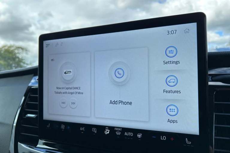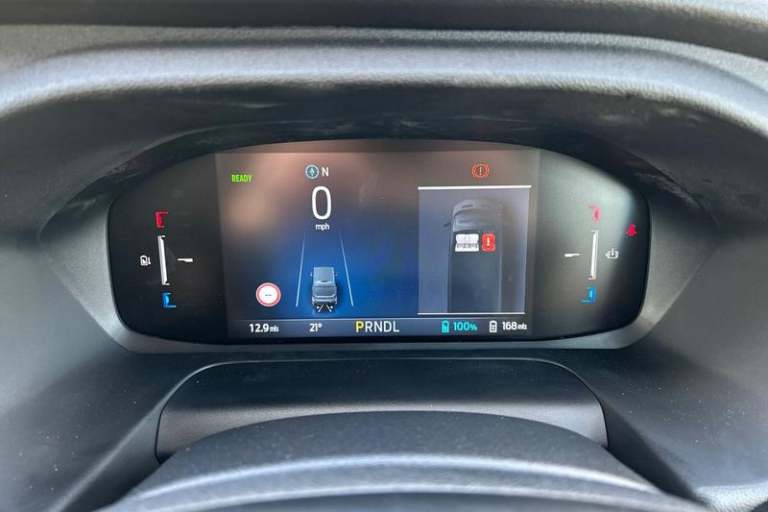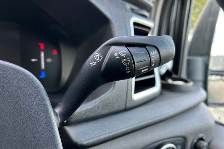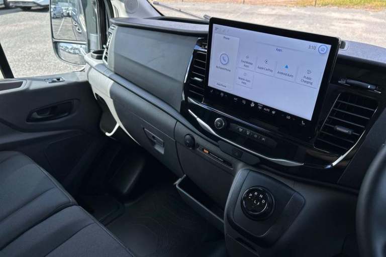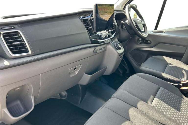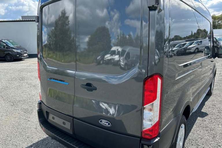 DIGITAL REAR VIEW MIRROR is an intelligent rear vision system that uses a rearward facing digital camera to capture video and stream it to the mirror-integrated LCD display, PRO POWER ONBOARD allows you to plug in electric tools and laptops and more while on the go - An integrated mobile power source delivering up to 23Kw of power, FRONT AND REAR PARKING SENSORS are designed to help you park more confidently helping you judge the distance between your vehicle and obstacles both in front and behind you, QUICKCLEAR HEATED WINDSCREEN uses ultra thin filaments that superheat to de-ice and de-mist your windscreen as well as help de-freeze the wipers and works in seconds, CRUISE CONTROL provides extra comfort on longer journeys allowing you take your foot off the acceleration whilst just focusing on steering the vehicle, HEATED FRONT SEATS Provide comfort in any weather, Automatic air conditioner with 12 inch multi function display, Lane centering assist, Electric parking brake, Automatic windshield wiper, Unique Grille with Charge Port, E-Transit badge, Electric windshield defroster, Single rear wheels, LED Daytime running lights, Quickclear heated windscreen, 8 Part digital instrument cluster, Rear mudflaps, Warning lights, PAS, Reach and rake adjustable steering column, High mounted stop lamp, Partial rubber inside floor cover, Front passenger airbag deactivation, Self coloured front grille with chrome surround and Anodised blue bars, Audio controls mounted on steering wheel, 2