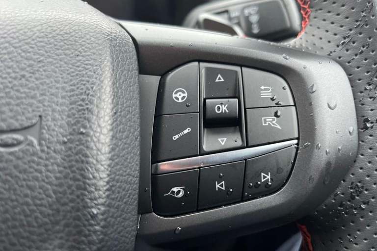 ADAPTIVE CRUISE CONTROL allows you to choose the speed you want to drive at and the system will maintain it - if the sensor detects a vehicle ahead it will slow the vehicle down to maintain a preset distance, BLUETOOTH HANDS FREE WITH VOICE CONTROL allows you to operate both your mobile phone and Ford audio system - controlling several functions using a set list of simple voice commands, FRONT AND REAR PARKING SENSORS are designed to help you park more confidently helping you judge the distance between your vehicle and obstacles both in front and behind you, FORDPASS CONNECT MODEM - Ford Pass App allows you to unlock a range of smart features including Remote Locking - Vehicle Location and more, HEATED FRONT SEATS Provide comfort in any weather, CRUISE CONTROL provides extra comfort on longer journeys allowing you take your foot off the acceleration whilst just focusing on steering the vehicle, LANE KEEPING AID uses forward looking cameras to detect if youre unintentionally drifting out of a lane - Lane keeping alert then warns you and if you dont respond the vehicle provides steering torque assistance to help guide you safely back into the right lane, AUTOMATIC LIGHTS AND WIPERS turns the headlamps on in low light situations and uses a rain sensor near the interior mirror to automatically turn on the wipers when moisture is detected, 17 alloy wheels painted in precision grey and all terrain tyres with Ford carbon black centre cap, Performance suspension, Thatcham alarm system,