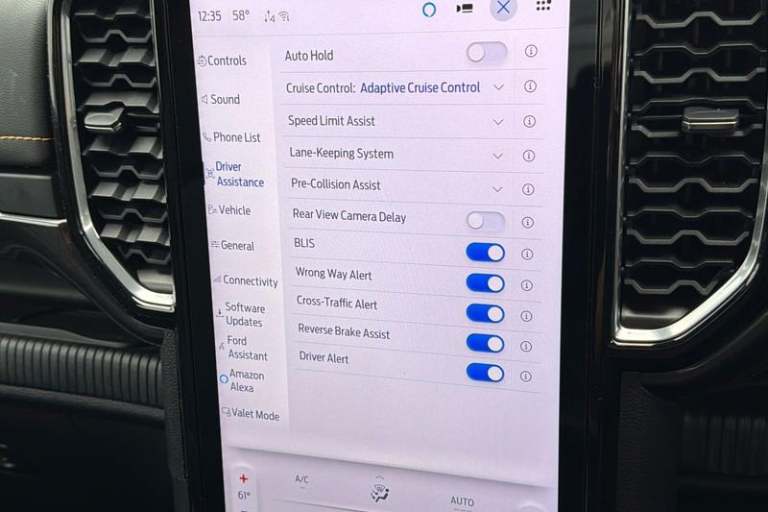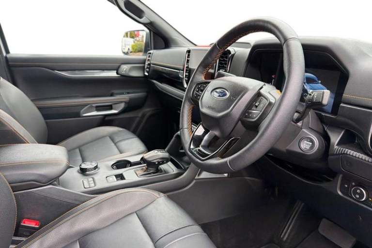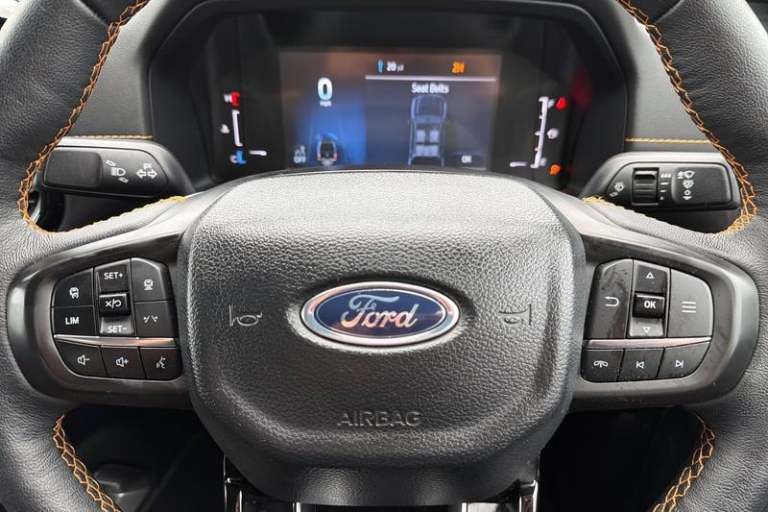 REAR VIEW CAMERA shows whats behind you on a screen in front of you on the dashboard - the system activates when you select reverse gear and using virtual guidelines can help you park, FRONT AND REAR PARKING SENSORS are designed to help you park more confidently helping you judge the distance between your vehicle and obstacles both in front and behind you, BLUETOOTH HANDS FREE WITH VOICE CONTROL allows you to operate both your mobile phone and Ford audio system - controlling several functions using a set list of simple voice commands, ADAPTIVE CRUISE CONTROL allows you to choose the speed you want to drive at and the system will maintain it - if the sensor detects a vehicle ahead it will slow the vehicle down to maintain a preset distance, HEATED FRONT SEATS Provide comfort in any weather, Dual power heated fold back door mirror with puddle lamps, Immobiliser, Pre collision assist, Acoustic laminated windscreen, Roof rails, Engine start/stop system, Ladder rack, Privacy glass, Trip computer, Reach and rake adjustable steering column, Child proof rear door locks, Pollen filter, Steering wheel with multimedia controls, High mounted stop lamp, Body coloured door handles, Tie down rails and rope hooks, Automatic headlights, Power door dead locks, Front splash guard, Electrochromic interior mirror, Front towing hooks, Electronic automatic gearshift, Accent colour grille, Accent colour front bumper, Functional upgrade pack 3 - Ranger, Daytime running lights, Heated steering wheel,