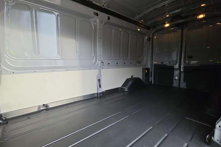 DIGITAL REAR VIEW MIRROR is an intelligent rear vision system that uses a rearward facing digital camera to capture video and stream it to the mirror-integrated LCD display, SELECTABLE DRIVE MODES - Tailor your E-Transit driving settings with three Selectable Drive Modes to suit the conditions Normal for everyday driving Slippery improves handling in wet or icy conditions and Eco helps you to get the most range from the battery, CRUISE CONTROL provides extra comfort on longer journeys allowing you take your foot off the acceleration whilst just focusing on steering the vehicle, FRONT AND REAR PARKING SENSORS are designed to help you park more confidently helping you judge the distance between your vehicle and obstacles both in front and behind you, BLUETOOTH HANDS FREE WITH VOICE CONTROL allows you to operate both your mobile phone and Ford audio system - controlling several functions using a set list of simple voice commands, SYNC 4 includes Android Auto - Apple Car Play with advance speech recognition and over the air update capability, QUICKCLEAR HEATED WINDSCREEN uses ultra thin filaments that superheat to de-ice and de-mist your windscreen as well as help de-freeze the wipers and works in seconds, HILL START ASSIST temporarily stops you rolling backwards or forwards when making a hill start - maintaining pressure to the braking system for an extra 25 seconds giving you more time and control as you move your foot from the brake to the accelerator, PAS, Single rear wheels,