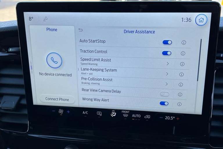 PAS, Quickclear heated windscreen, Rear mudflaps, Warning lights, Reach and rake adjustable steering column, High mounted stop lamp, Front passenger airbag deactivation, Audio controls mounted on steering wheel, 2 x 12V power outlets, Configurable Unlocking, Cold start (-20), Header mounted courtesy lights - 2 map lights, Water in fuel filter with sensor, Gearshift indicator light, Easy fuel capless refuelling system, LED Daytime running lights, Auto start/stop system, Electronic dynamic cornering control, Tyre pressure sensors, Side wind mitigation, DAB Radio, Intelligent Speed Assist, Emergency assistance, Rear fog lights, Visible Vehicle Identification Number (VIN), Overhead console, Vehicle maintenance monitor, Selectable drive mode, Lockable glove box lid, ABS + ESP + Hill start assist, Curvature Control, Emergency brake warning, Radio with remote stalks, Rear axle Alt A - Narrow track, Integrated indicators on door mirrors, Electric windshield defroster, Automatic windshield wiper, Driver one touch up/down power windows, Polyurethane gear shift knob, Driver and passenger seatbelt reminder, Partial rubber inside floor cover, Speed dependent power lock group, Partial molded headliner, Two step door unlock system, Rear splash guards, Side marker lamps, Driver sunglasses roof storage, Door entry remote control unit 2 Fobs key, Quad beam headlamps, High roof line, Storage box under dual passenger seat, Driver large head/short arm mirror, Load compartment tie down loops, Auto
