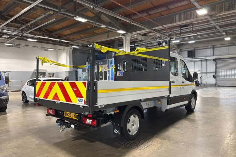 CPD CONVERSION, CHATPER 8 CHEVRON BAORD, CPD Standard LED Work Light, LED BEACON MINI LIGHTBAR, Single Level Fall Arrest Straps, Front air conditioning with electric automatic temperature control (EATC), CPD Conspicuity Tape & Red Door Lozenges, 4 Fixing points in the side rave either side of the vehicle, Wireless Apple CarPlay and Android Auto, REAR VIEW CAMERA shows whats behind you on a screen in front of you on the dashboard - the system activates when you select reverse gear and using virtual guidelines can help you park, HILL START ASSIST temporarily stops you rolling backwards or forwards when making a hill start - maintaining pressure to the braking system for an extra 25 seconds giving you more time and control as you move your foot from the brake to the accelerator, Electric power assisted steering (EPAS), Driver's airbag, Recirculation heater, Automatic front wipers with rain sensor, Trip computer, Warning lights, Key operated bonnet release, Reach and rake adjustable steering column, Audio controls mounted on steering wheel, 2 x 12V power outlets, Part body colour front bumper, Vehicle maintenance monitor, Emergency brake warning, Front door map pockets, Door mirrors - Blind spot eliminator and integrated side indicator, Curve control, audible signal if a door is ajar when locking activated, Hill start assist, Gearshift indicator light, Exhaust exit behind muff down, Front side and curtain airbags, Ford Easy Fuel capless refuelling system with misfuel inhibit, Collision
