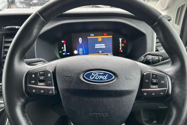 REAR VIEW CAMERA shows whats behind you on a screen in front of you on the dashboard - the system activates when you select reverse gear and using virtual guidelines can help you park, QUICKCLEAR HEATED WINDSCREEN uses ultra thin filaments that superheat to de-ice and de-mist your windscreen as well as help de-freeze the wipers and works in seconds, CRUISE CONTROL provides extra comfort on longer journeys allowing you take your foot off the acceleration whilst just focusing on steering the vehicle, SYNC 4 includes Android Auto - Apple Car Play with advance speech recognition and over the air update capability, BLUETOOTH HANDS FREE WITH VOICE CONTROL allows you to operate both your mobile phone and Ford audio system - controlling several functions using a set list of simple voice commands, HILL START ASSIST temporarily stops you rolling backwards or forwards when making a hill start - maintaining pressure to the braking system for an extra 25 seconds giving you more time and control as you move your foot from the brake to the accelerator, Bi-Xenon headlights with LED daytime running lights, 12 Touchscreen with SYNC4 navigation, DAB Radio, Driver one touch up/down power windows, Speed dependent power lock group, PAS, Single rear wheels, Quickclear heated windscreen, Rear mudflaps, Leather steering wheel, Warning lights, Emergency brake warning, Non limited slip differential front axle, Audio controls mounted on steering wheel, Electric windshield defroster, High intensity discharge