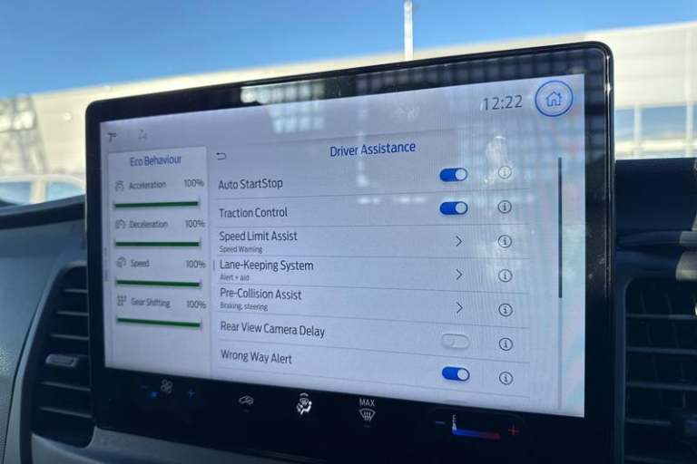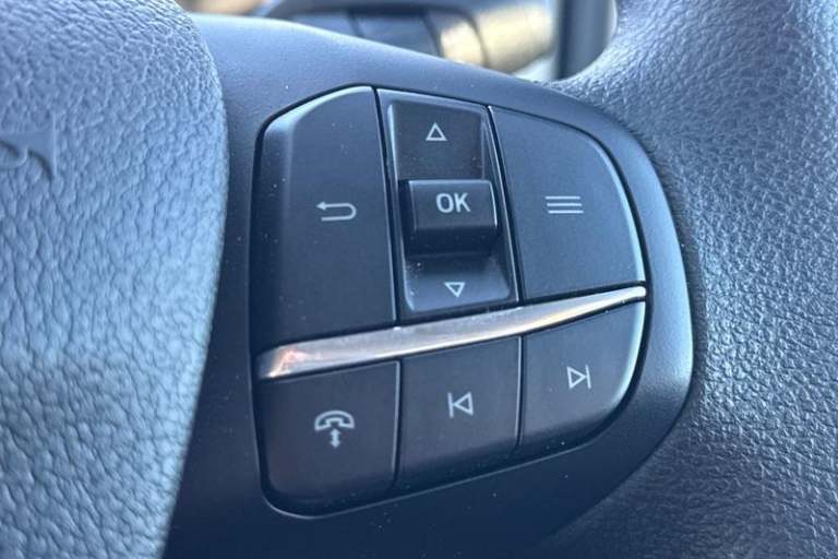 REAR VIEW CAMERA shows whats behind you on a screen in front of you on the dashboard - the system activates when you select reverse gear and using virtual guidelines can help you park, CRUISE CONTROL provides extra comfort on longer journeys allowing you take your foot off the acceleration whilst just focusing on steering the vehicle, BLUETOOTH HANDS FREE WITH VOICE CONTROL allows you to operate both your mobile phone and Ford audio system - controlling several functions using a set list of simple voice commands, HILL START ASSIST temporarily stops you rolling backwards or forwards when making a hill start - maintaining pressure to the braking system for an extra 25 seconds giving you more time and control as you move your foot from the brake to the accelerator, Wireless Apple CarPlay and Android Auto, Automatic on/off headlights, Start/stop system, Recirculation heater, Centre console, Warning lights, Key operated bonnet release, Reach and rake adjustable steering column, Audio controls mounted on steering wheel, 2 x 12V power outlets, Part body colour front bumper, Front door map pockets, Hill start assist, Gearshift indicator light, Daytime running lights, Rope hooks, Door mirrors - Blind spot eliminator and integrated side indicator, Low roof line, Halogen projector headlights, Collision mitigation system, Adaptive front lighting system, Electronic dynamic cornering control, Emergency brake assist, Roll stability control, Front axle rating - 1850KG, Driver's side storage