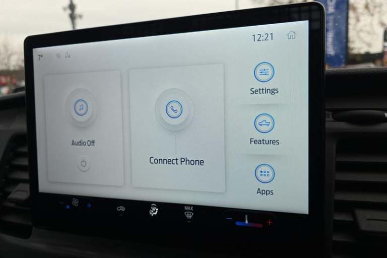 REAR VIEW CAMERA shows whats behind you on a screen in front of you on the dashboard - the system activates when you select reverse gear and using virtual guidelines can help you park, BLUETOOTH HANDS FREE WITH VOICE CONTROL allows you to operate both your mobile phone and Ford audio system - controlling several functions using a set list of simple voice commands, QUICKCLEAR HEATED WINDSCREEN uses ultra thin filaments that superheat to de-ice and de-mist your windscreen as well as help de-freeze the wipers and works in seconds, HILL START ASSIST temporarily stops you rolling backwards or forwards when making a hill start - maintaining pressure to the braking system for an extra 25 seconds giving you more time and control as you move your foot from the brake to the accelerator, Driver one touch up/down power windows, CRUISE CONTROL provides extra comfort on longer journeys allowing you take your foot off the acceleration whilst just focusing on steering the vehicle, Wrong way alert, Collision mitigation system, Driver's airbag, Recirculation heater, Centre console, Warning lights, Key operated bonnet release, Reach and rake adjustable steering column, Audio controls mounted on steering wheel, 2 x 12V power outlets, Part body colour front bumper, Front door map pockets, Hill start assist, Gearshift indicator light, Daytime running lights, Rope hooks, Low roof line, Complete tinted glass, Electronic dynamic cornering control, Emergency brake assist, Multi stage vehicle, Roll stability