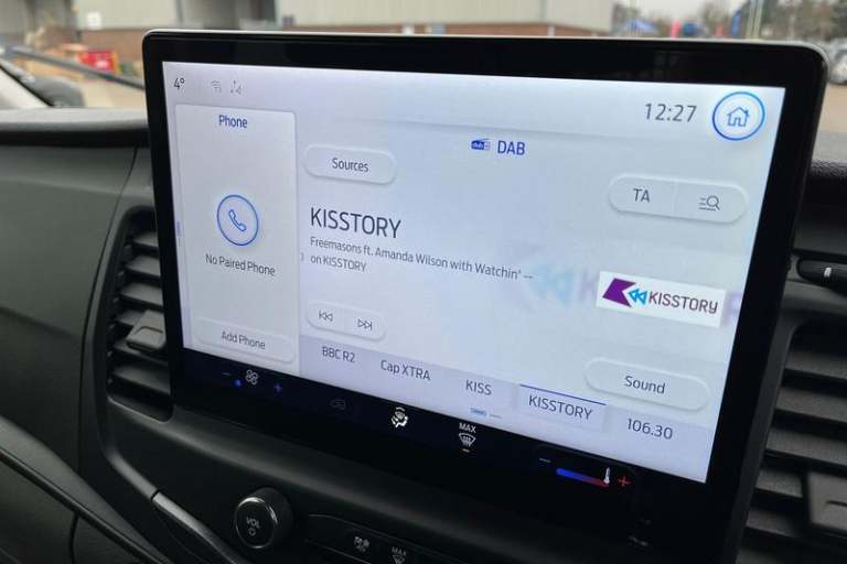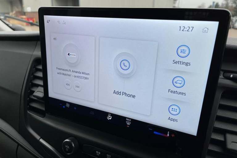 CRUISE CONTROL provides extra comfort on longer journeys allowing you take your foot off the acceleration whilst just focusing on steering the vehicle, BLUETOOTH HANDS FREE WITH VOICE CONTROL allows you to operate both your mobile phone and Ford audio system - controlling several functions using a set list of simple voice commands, QUICKCLEAR HEATED WINDSCREEN uses ultra thin filaments that superheat to de-ice and de-mist your windscreen as well as help de-freeze the wipers and works in seconds, HILL START ASSIST temporarily stops you rolling backwards or forwards when making a hill start - maintaining pressure to the braking system for an extra 25 seconds giving you more time and control as you move your foot from the brake to the accelerator, Driver's airbag, Recirculation heater, Centre console, Warning lights, Key operated bonnet release, Audio controls mounted on steering wheel, Reach and rake adjustable steering column, 2 x 12V power outlets, Part body colour front bumper, Front door map pockets, linear rate coil springs, Hill start assist, Gearshift indicator light, 4-Spoke Polyurethane steering wheel, Door mirrors - Blind spot eliminator and integrated side indicator, Daytime running lights, Rope hooks, Low roof line, Electronic dynamic cornering control, Side marker lamps, Emergency brake assist, Unperforated cab back panel, Roll stability control, Wireless Apple CarPlay and Android Auto, Ford Easy Fuel capless refuelling system with misfuel inhibit, Tyre pressure monitoring