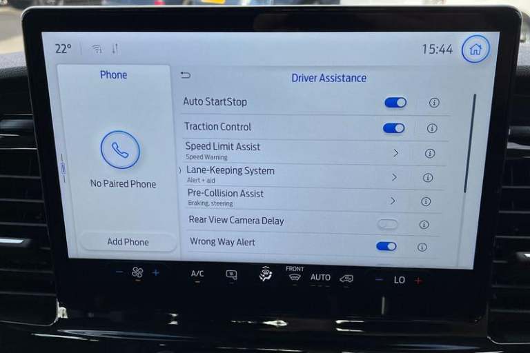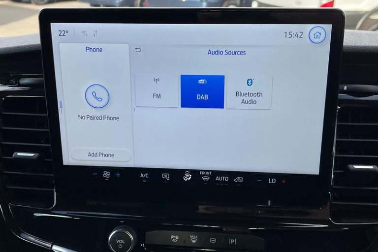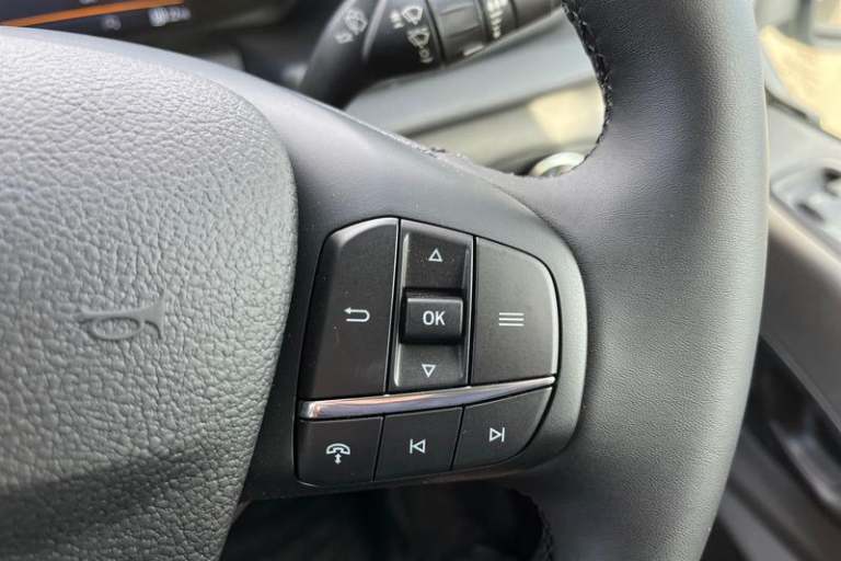 REAR VIEW CAMERA shows whats behind you on a screen in front of you on the dashboard - the system activates when you select reverse gear and using virtual guidelines can help you park, CRUISE CONTROL provides extra comfort on longer journeys allowing you take your foot off the acceleration whilst just focusing on steering the vehicle, HILL START ASSIST temporarily stops you rolling backwards or forwards when making a hill start - maintaining pressure to the braking system for an extra 25 seconds giving you more time and control as you move your foot from the brake to the accelerator, BLUETOOTH HANDS FREE WITH VOICE CONTROL allows you to operate both your mobile phone and Ford audio system - controlling several functions using a set list of simple voice commands, Wireless Apple CarPlay and Android Auto, Front air conditioning with electric automatic temperature control (EATC), Automatic front wipers with rain sensor, Recirculation heater, Quickclear heated windscreen, Trip computer, Warning lights, Key operated bonnet release, Reach and rake adjustable steering column, Audio controls mounted on steering wheel, Underseat storage compartment (Under dual passenger seat), 2-way head restraints on front seats, Driver one touch up/down power windows, Driver's side storage compartment on facia top, Header mounted courtesy lights front with theatre dimming and map reading lights, 2 x 12V power outlets, Part body colour front bumper, fascia mounted bottle holder, Adaptive front lighting